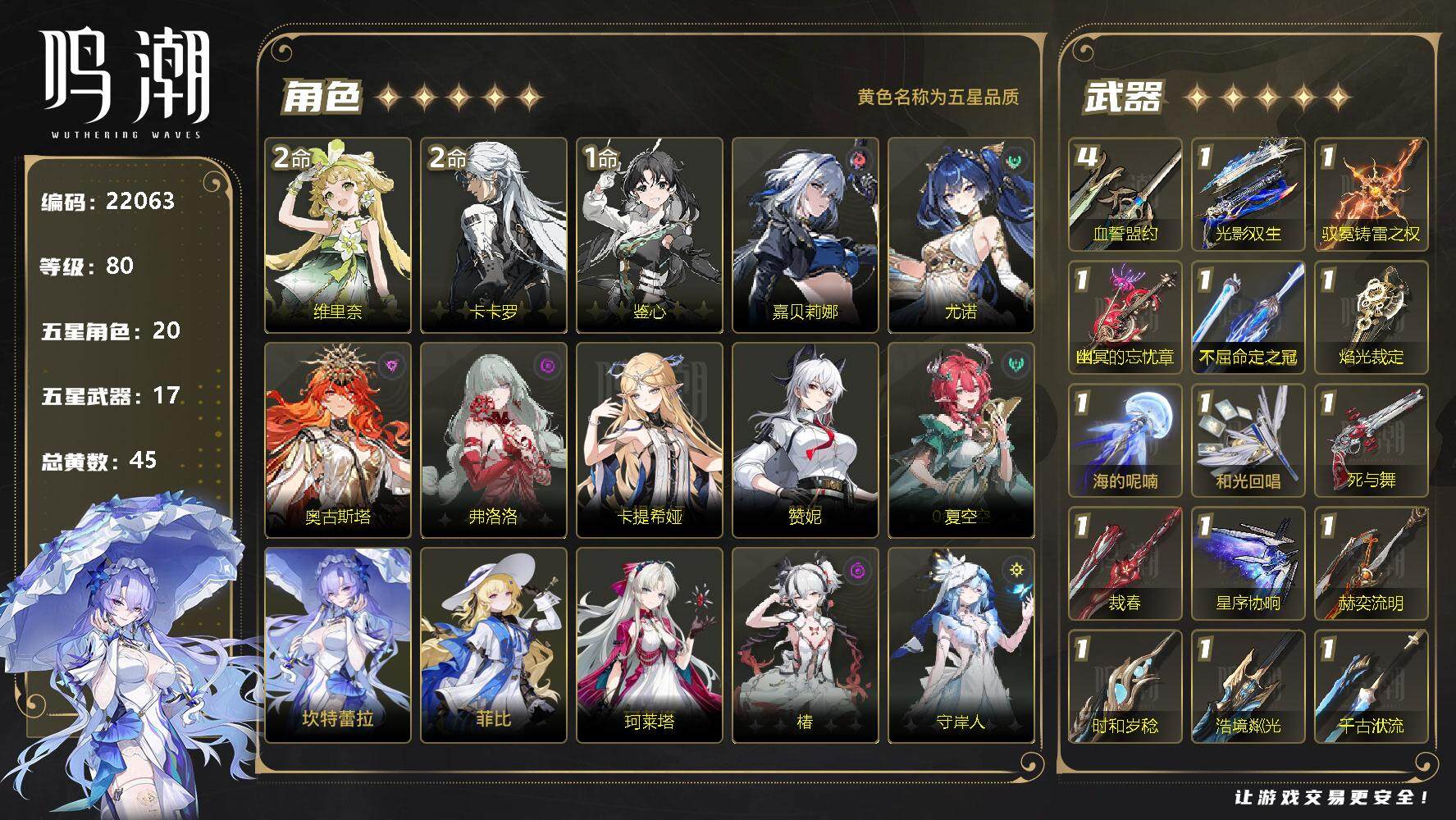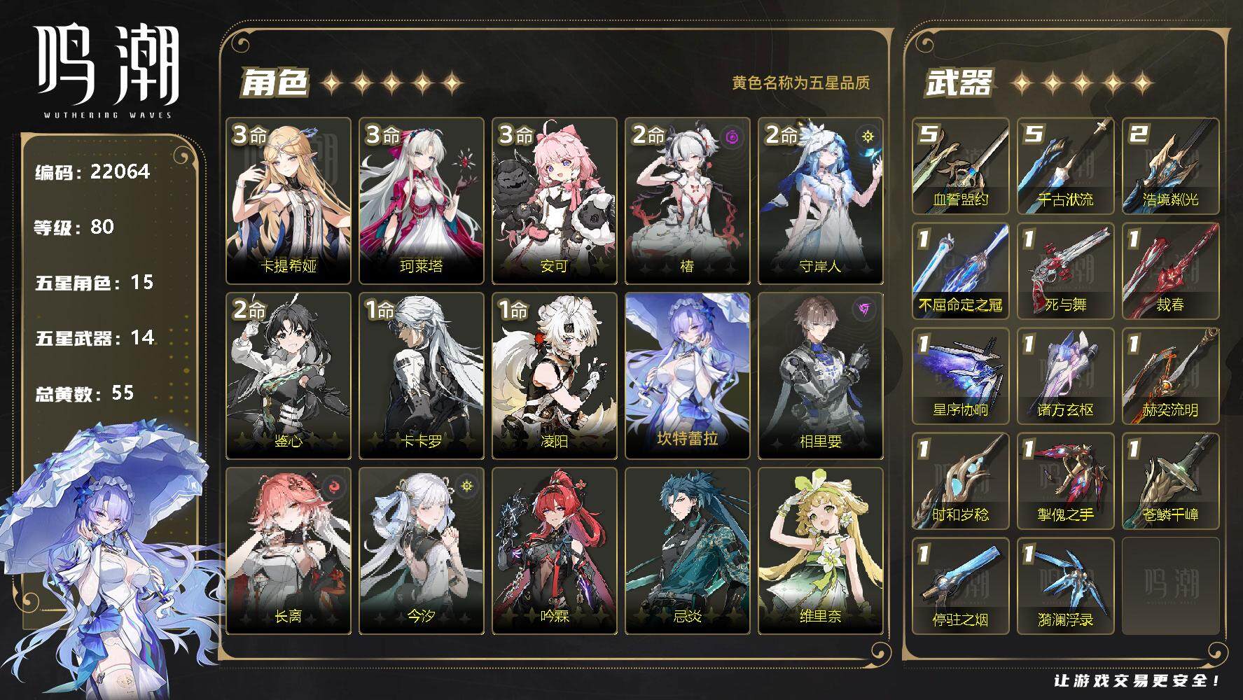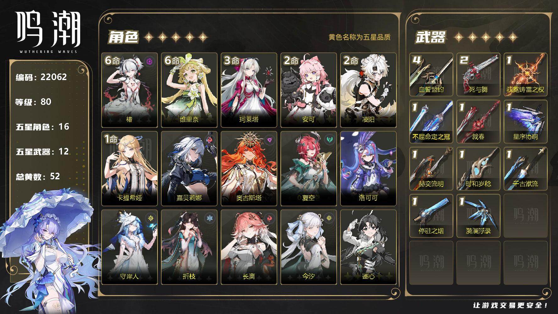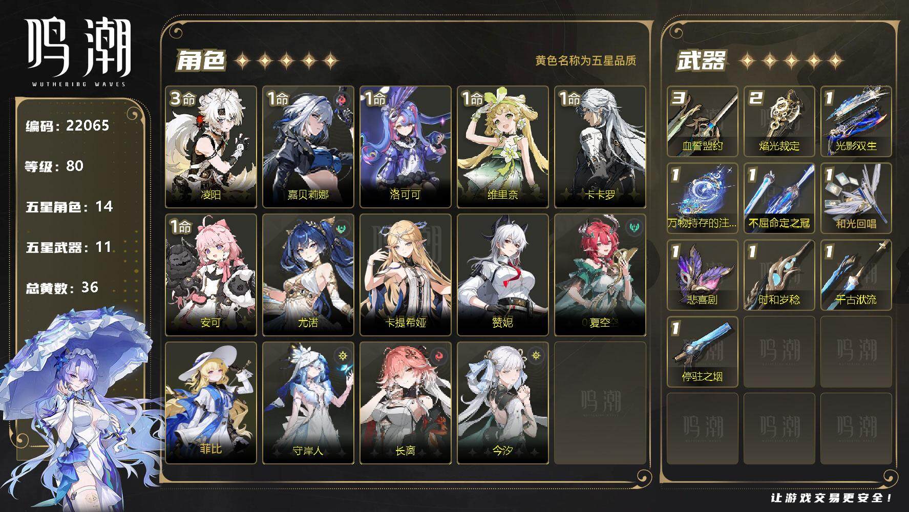鸣潮【苹果官方】14女团12专武 配队齐全爽玩号 小保底垫36 双倍全在