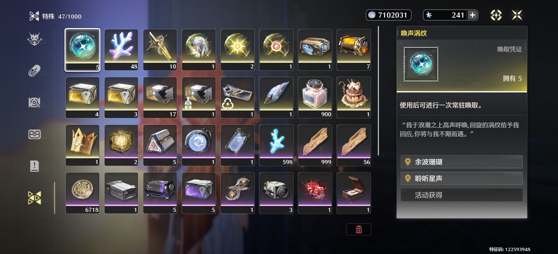 鸣潮准满命卡6+1号上有140抽加➕570紫珊瑚珊瑚五百多够抽满命地图资源还可以拿不少抽没怎么肝
