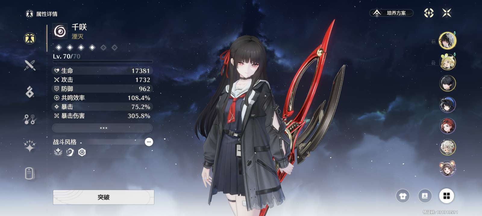 鸣潮6+1千咲,有维里奈,双金欧皇号,活动门扉什么的都没动,无换绑cd