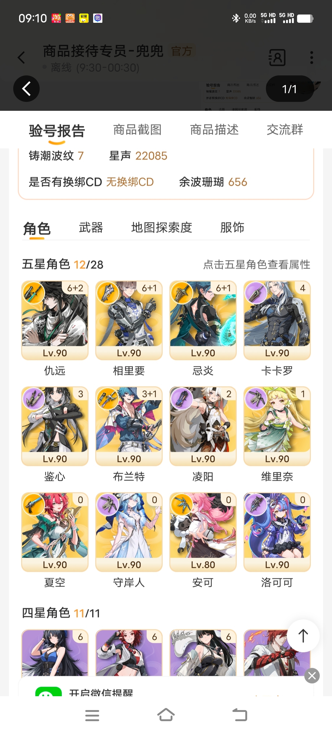 伪4满鸣潮男团号3满命复刻必满62仇远 61忌炎 61相里要 31船长 4卡卡罗22000星声