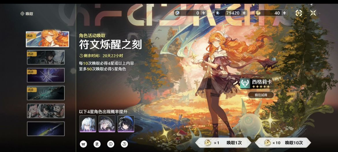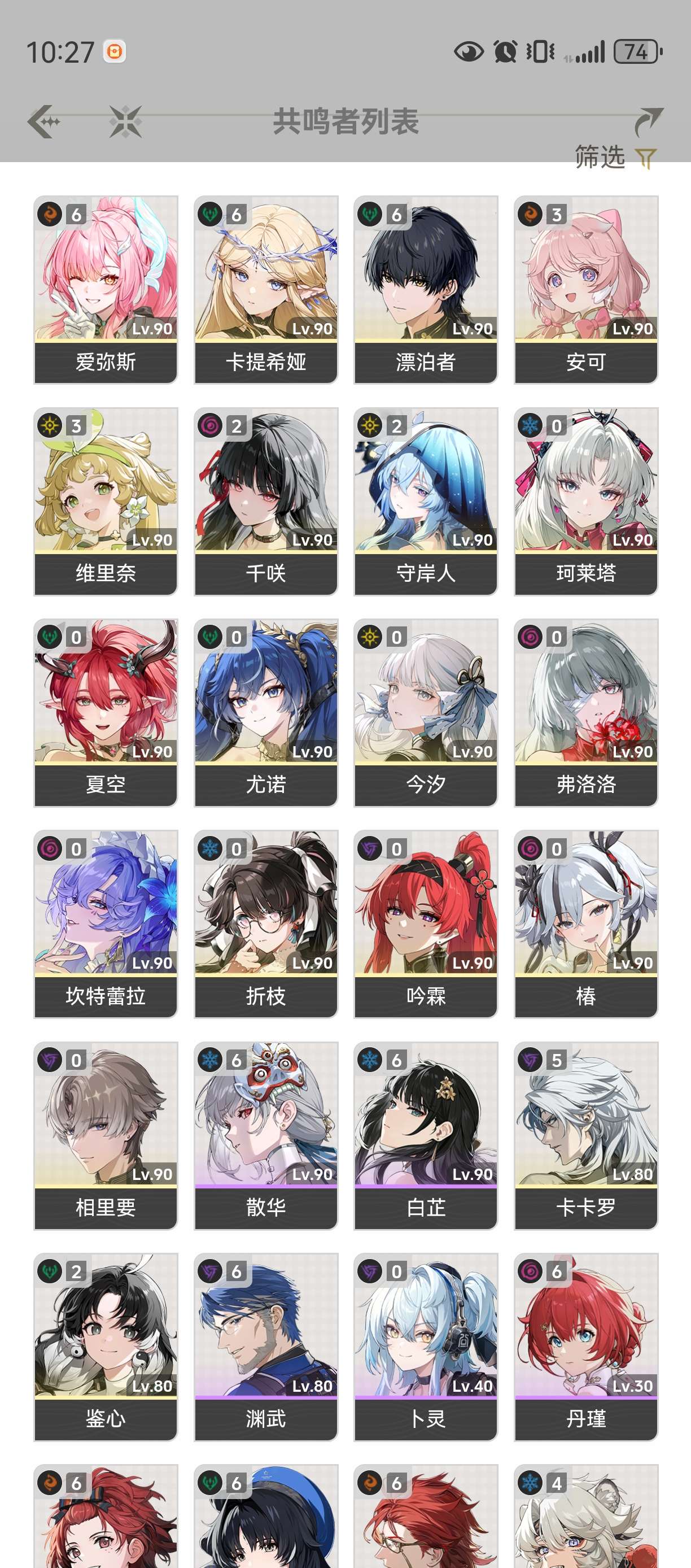 20个金,赞妮完整配队,长离0+1,守岸人,卡提希娅,千咲等