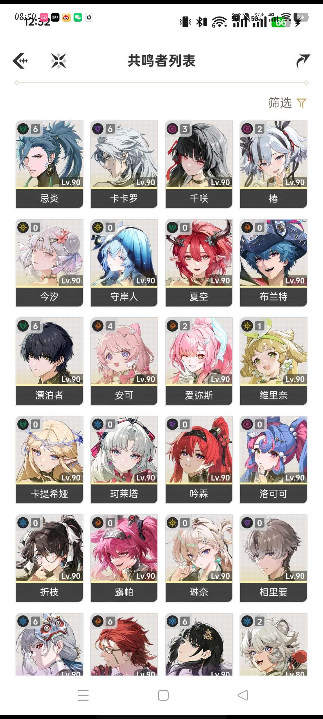 鸣潮6+1西格莉卡,有维里奈,双金欧皇号,活动门扉什么的都没动,无换绑cd,单绑手机号