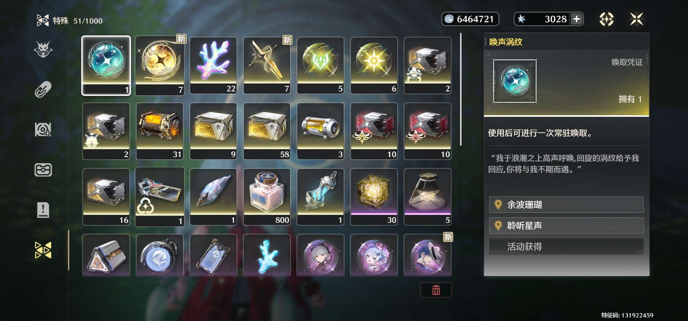 650抽-67000星声+140唤声+4浮金-可换绑