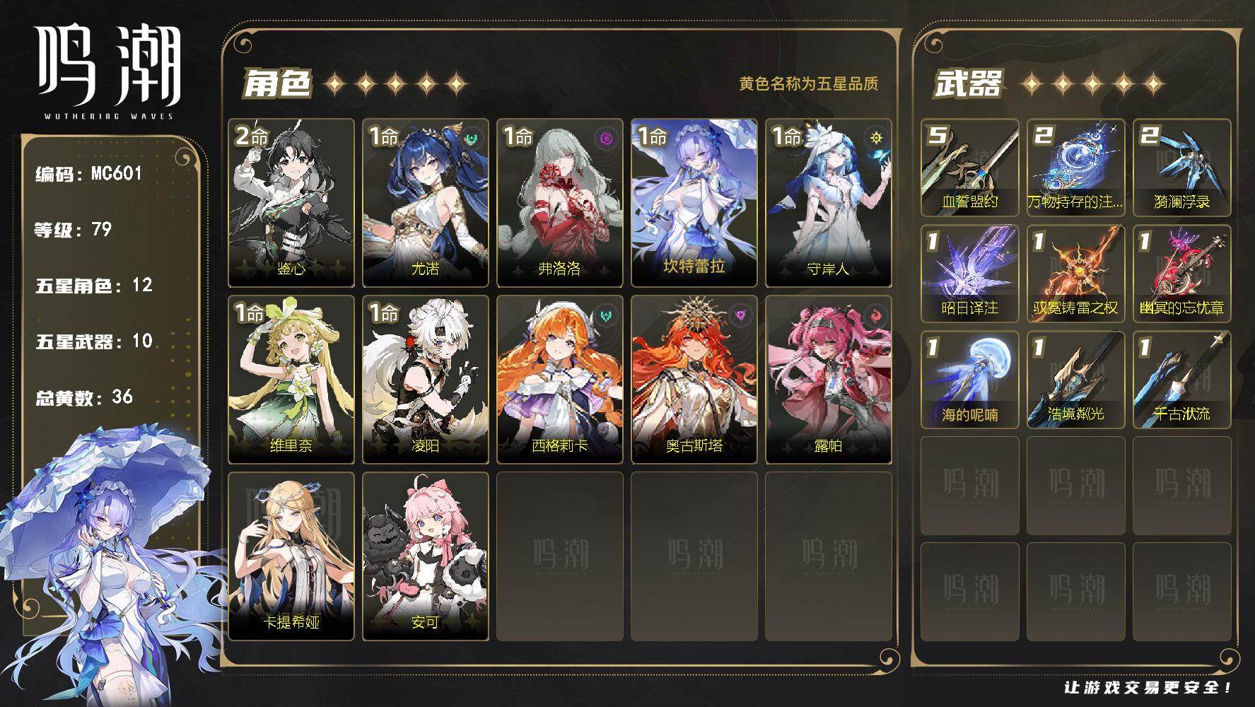 全图鉴♂️带70抽.1+2忌炎.1+1今汐.01奥古01椿.诚心卖