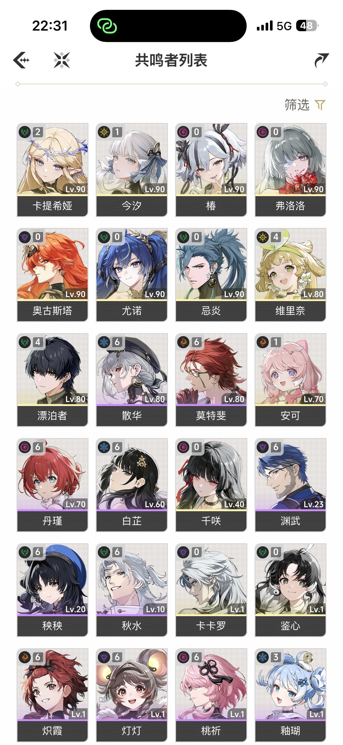鸣潮可完号,地图大部分已开,主c已练好,已垫56抽