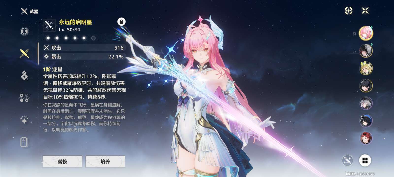 6命爱弥斯+专武永远的启明星+1-3个五星