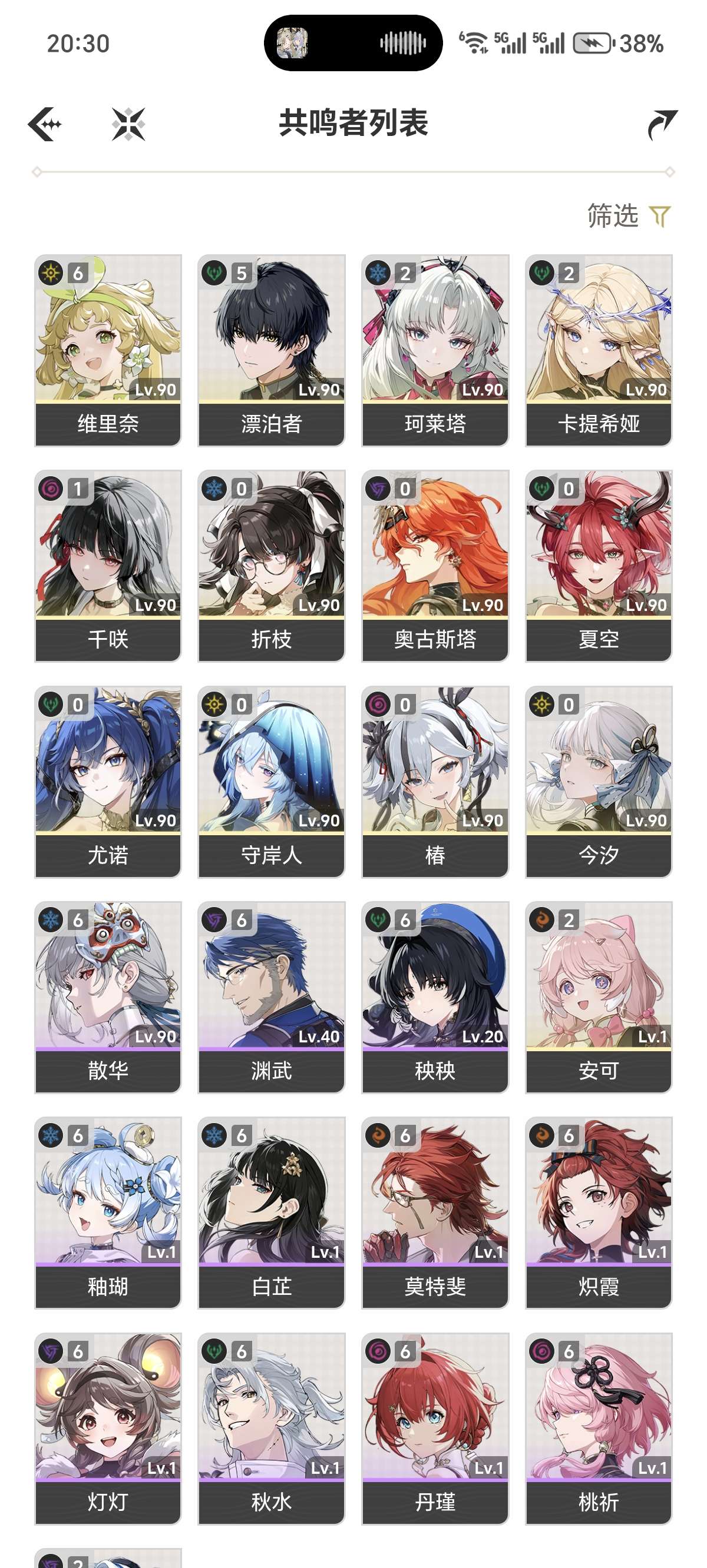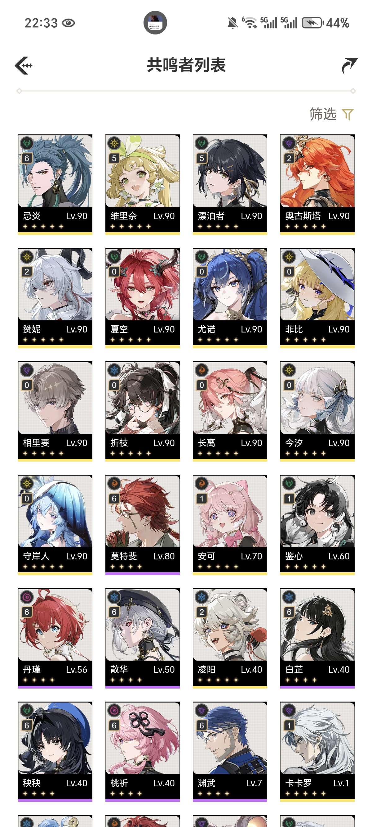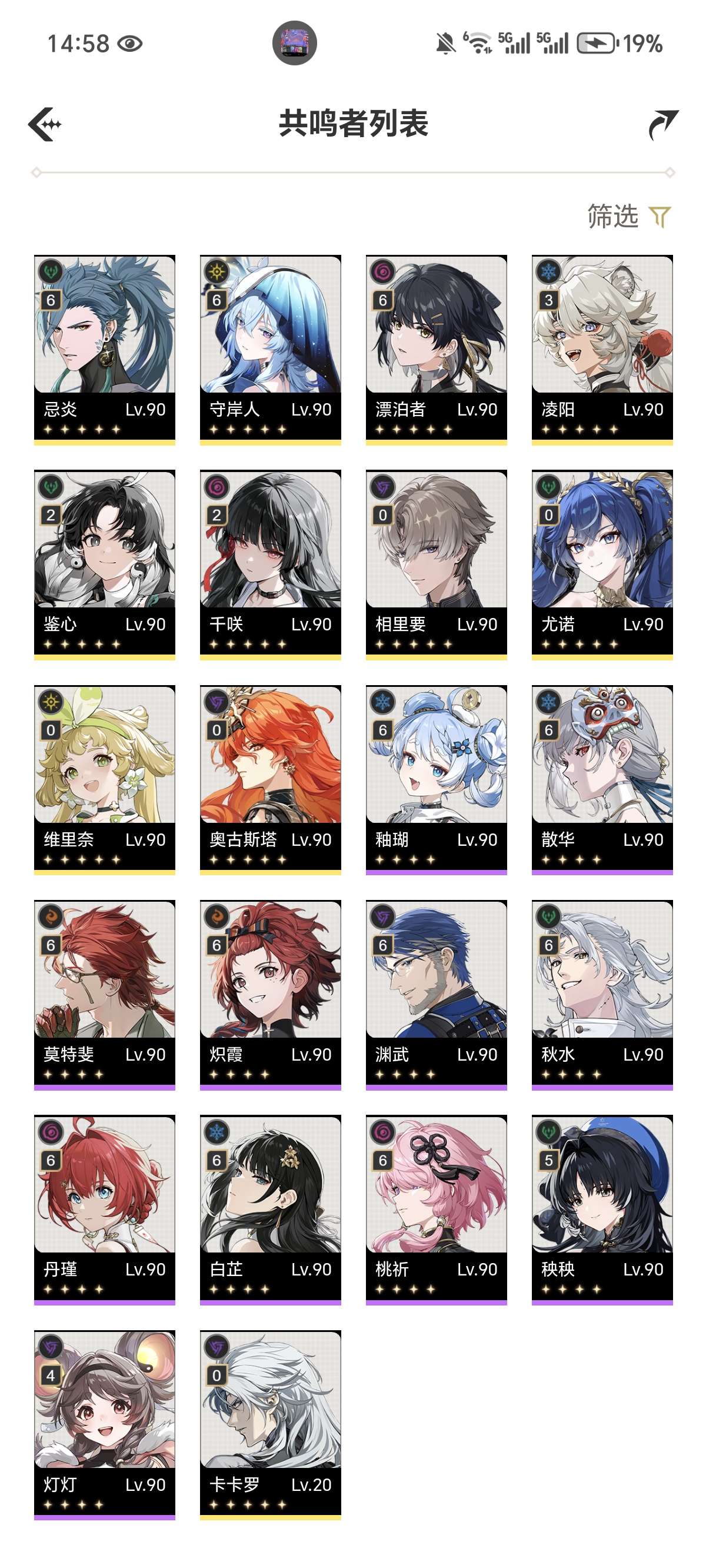 鸣潮成品号双满命带85抽61守岸人61忌炎21千咲带01尤诺奥古斯塔齐全
