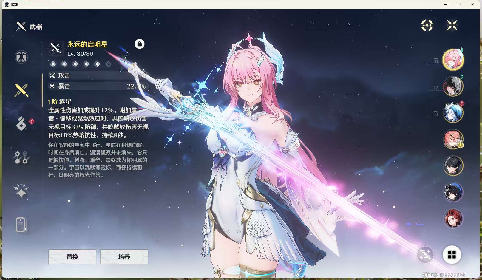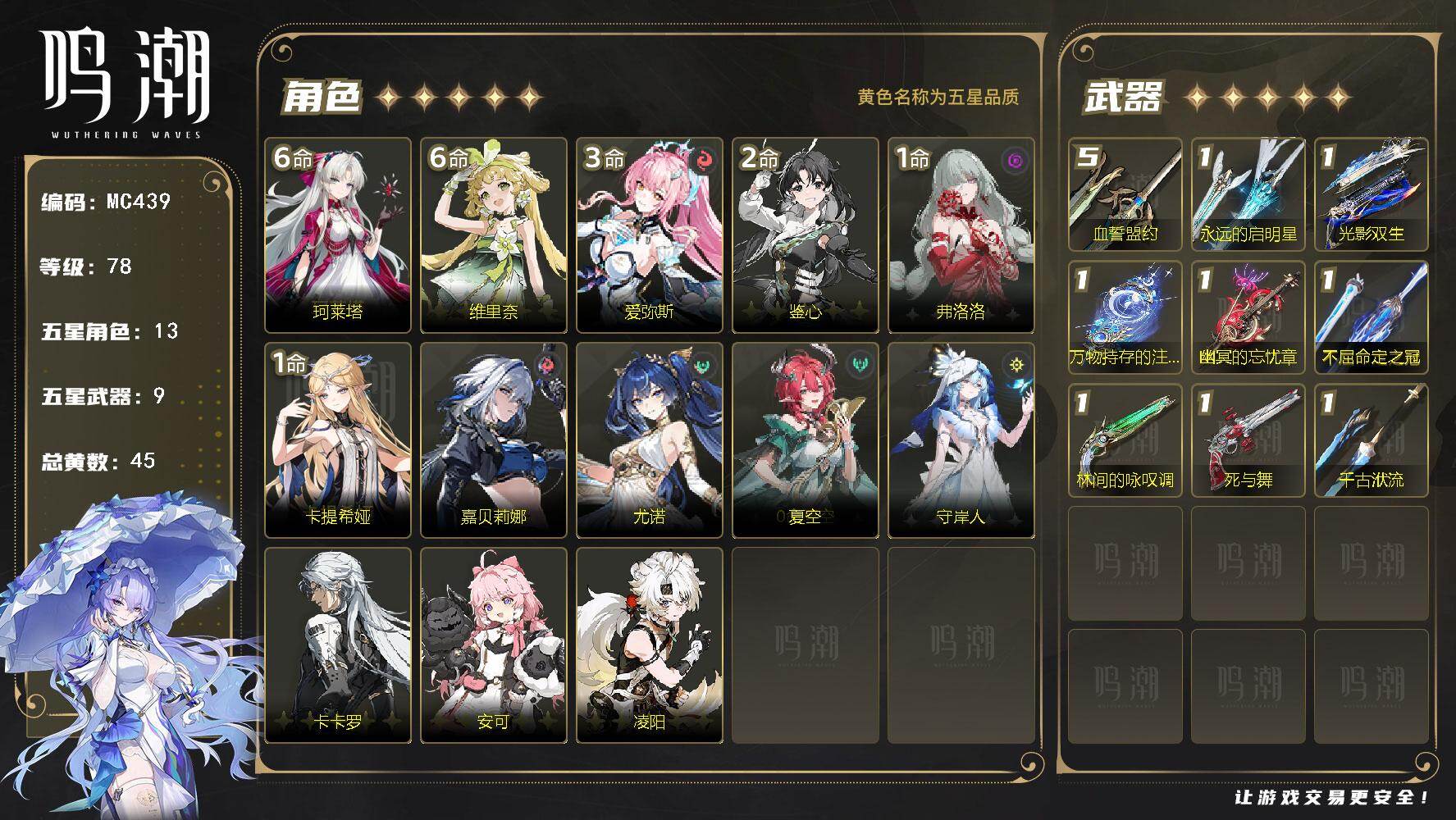 三岁主80级10up多专武今汐皮肤 1+2今汐卡提 超级毕业号深渊什么的随便打 探索度低