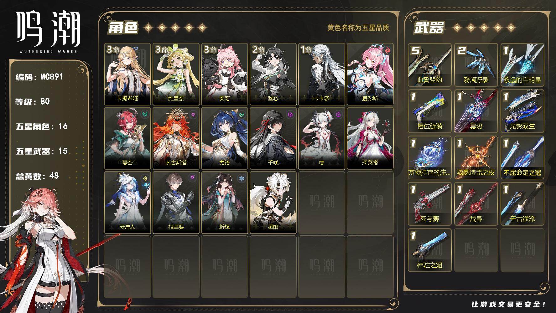 63000星声+14浮金+109涡纹+2武器抽+爱弥斯