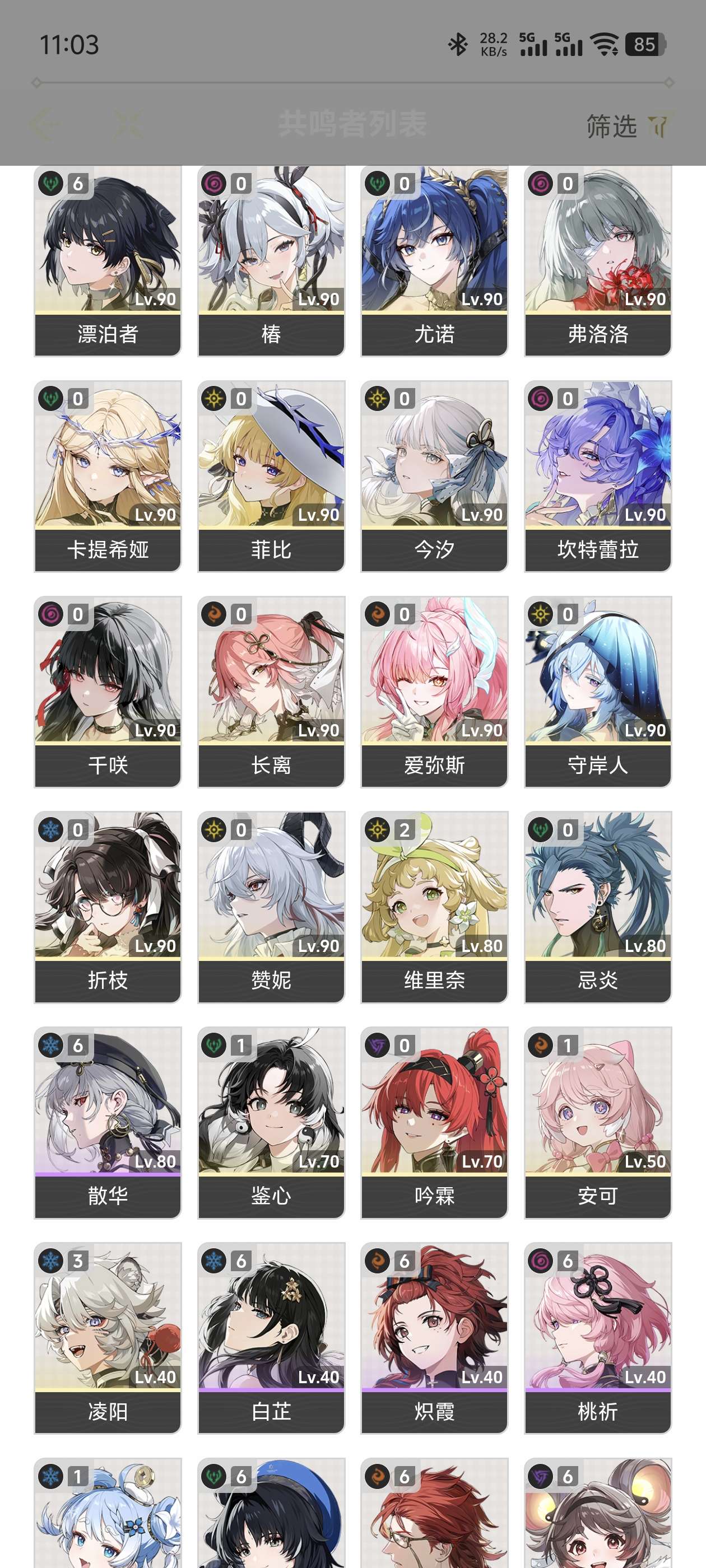 01小爱01优诺01千01守小月卡11天余15抽,有练度声骸小毕业