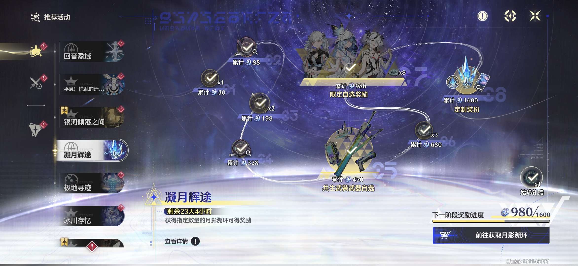 刚充 980。相当于原价送满命卡提跟爱弥斯琳奈等