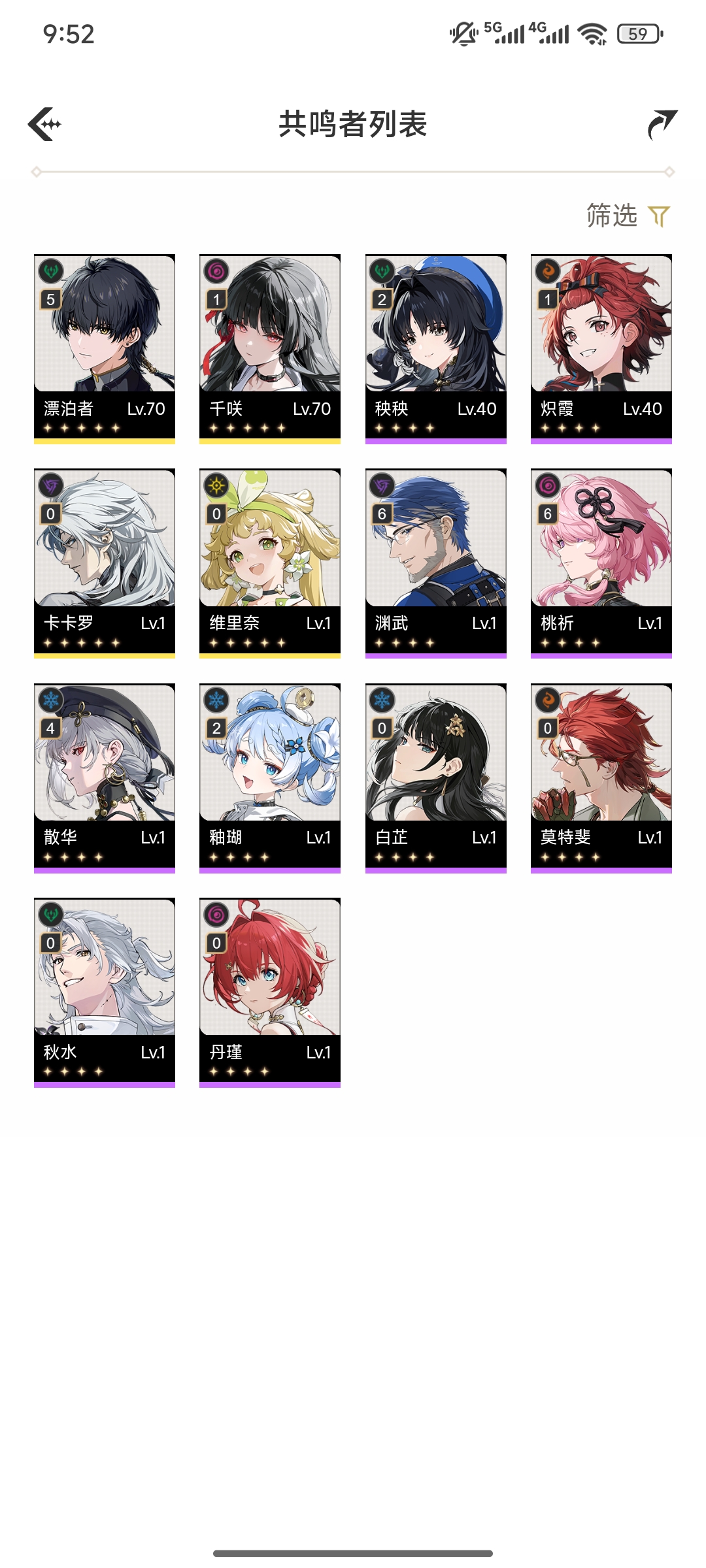 鸣潮01蕾拉01尤诺01赞妮11相里要21珂莱塔01椿12今汐01忌炎 单千咲守岸人嘉贝莉娜弗洛洛卡
