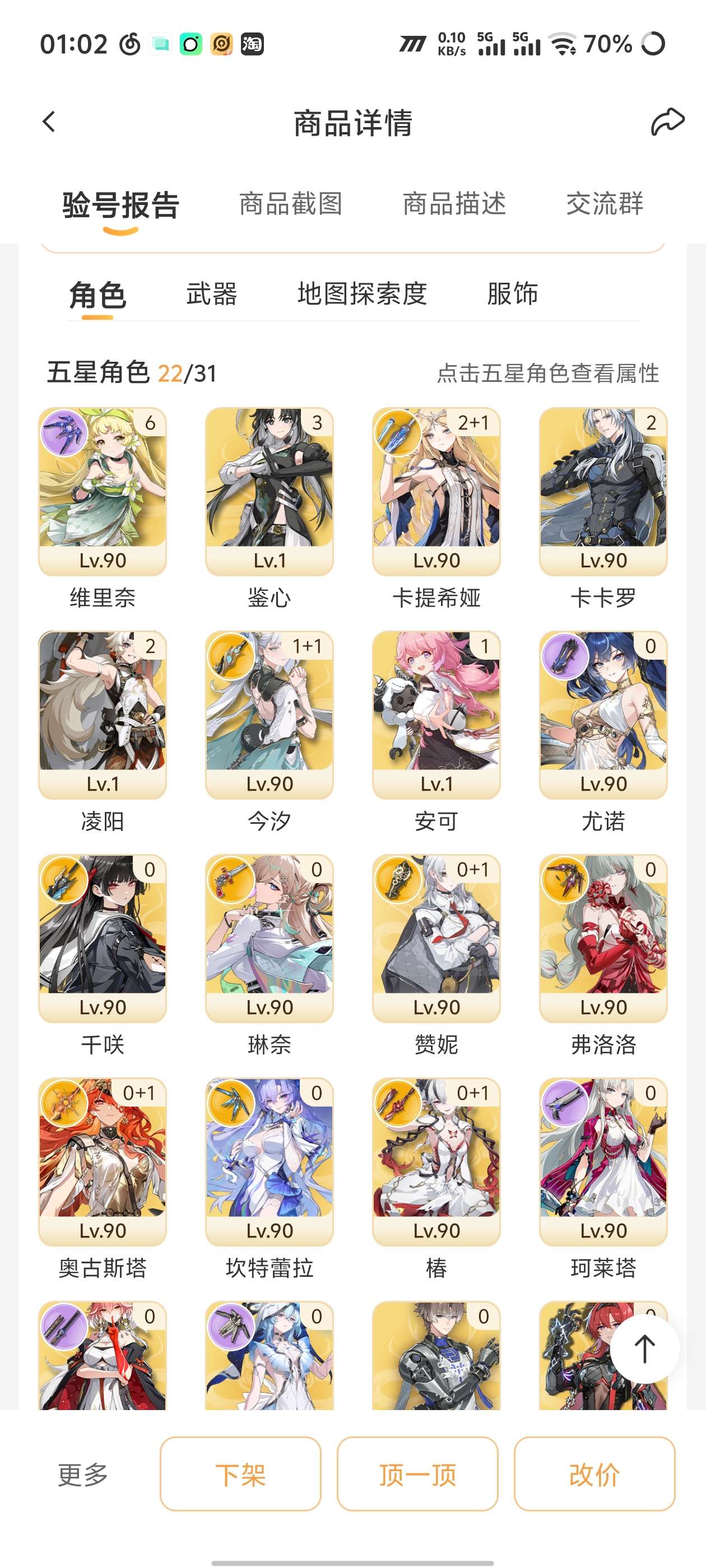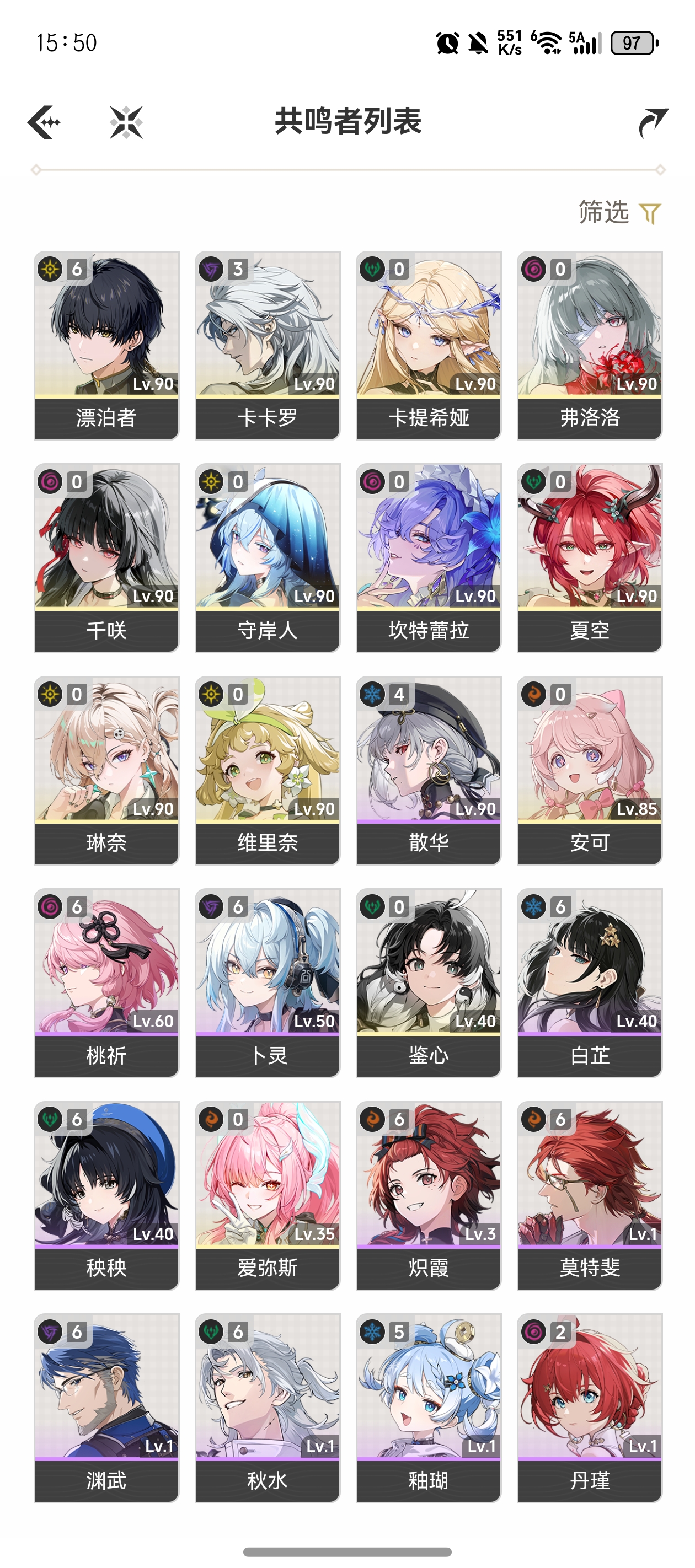 鸣潮6+1卡提希娅,夏空,有维里奈,双金欧皇号,只歪一次,无换绑cd,单绑手机,可小刀