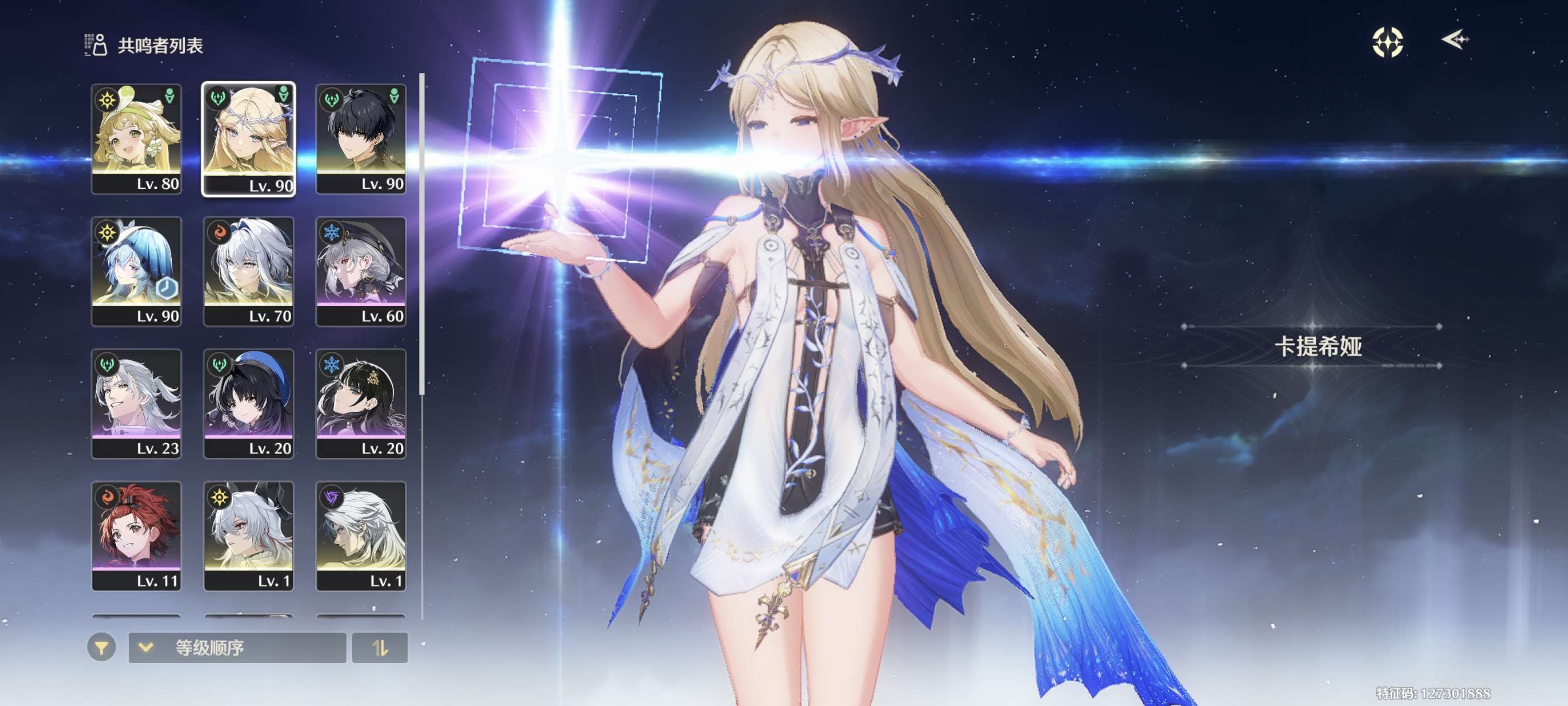70级,01卡提,星声:25656,余波珊瑚:177,浮金波纹:50,铸潮波纹:3