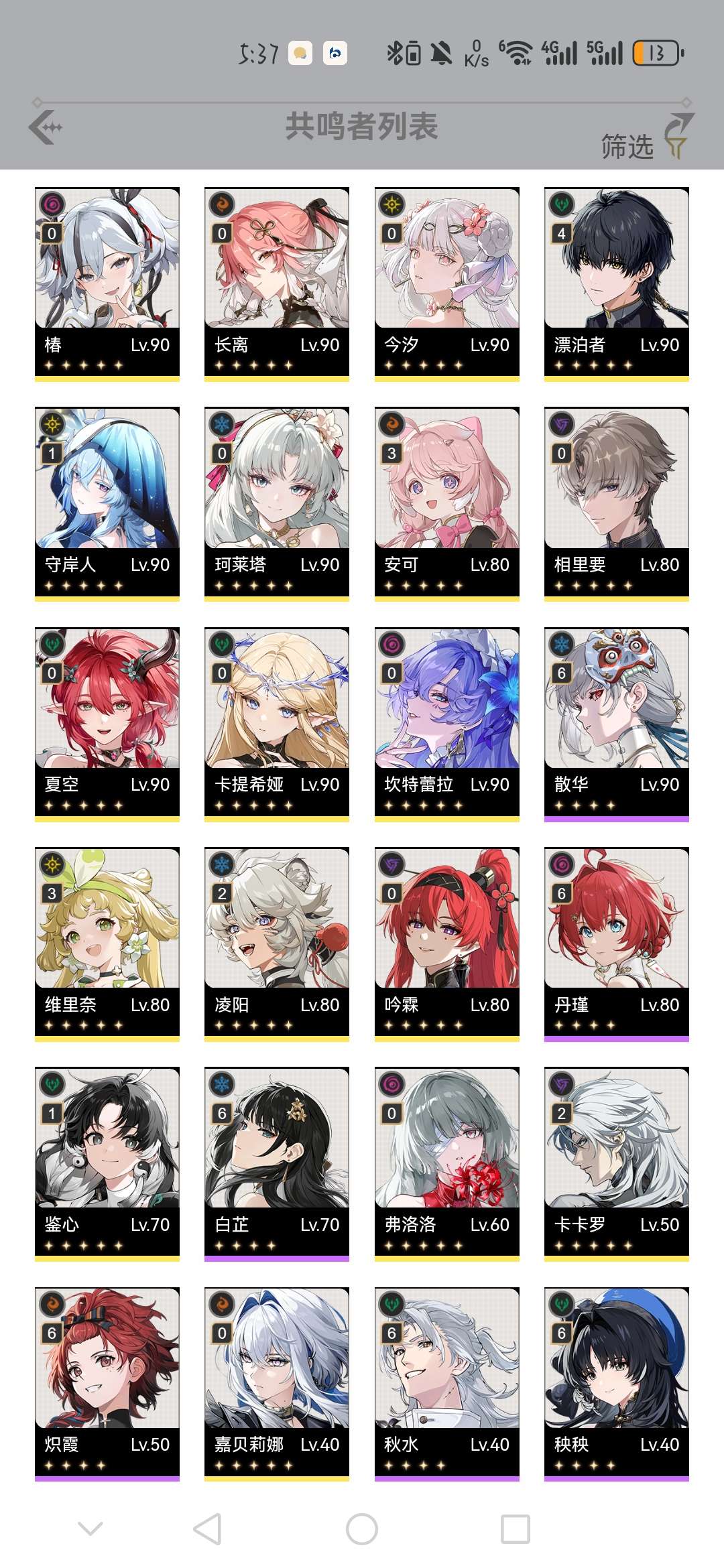 鸣潮31珂莱塔11卡提希娅11椿11菲比01弗洛洛01蕾拉01守岸人01折枝01赞妮01嘉贝莉娜