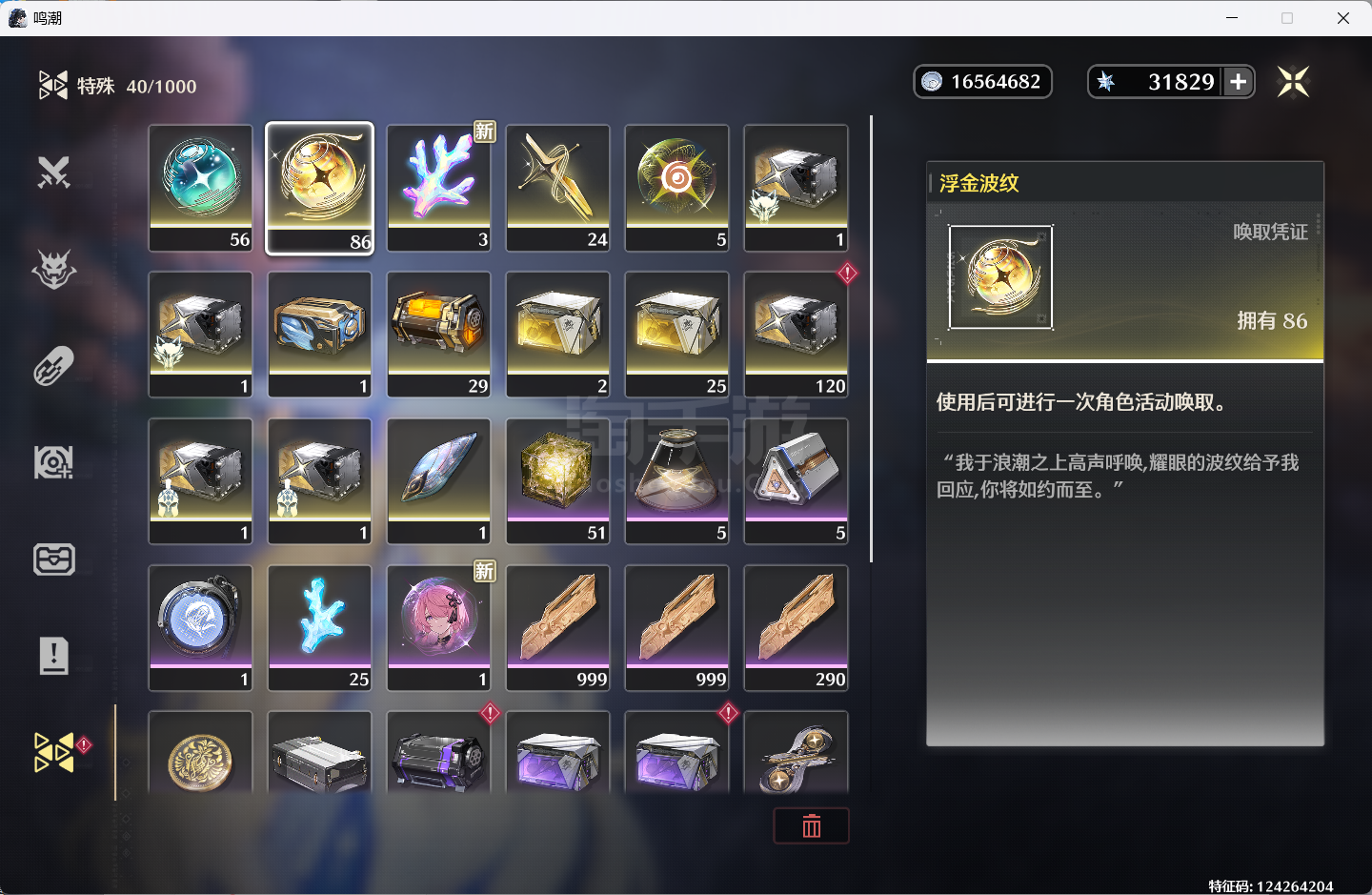菲比0+1,31800星声,86浮金,56唤声,多资源