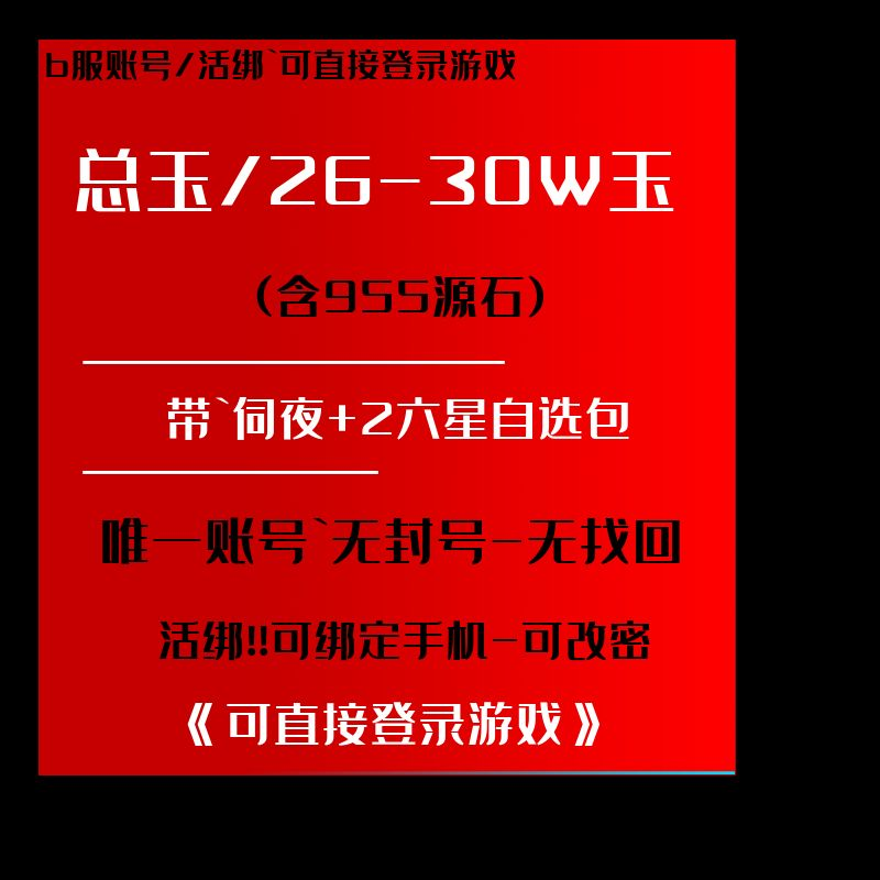 b服/活绑-可直接登录游戏【26W玉+伺夜+2六星自选包】