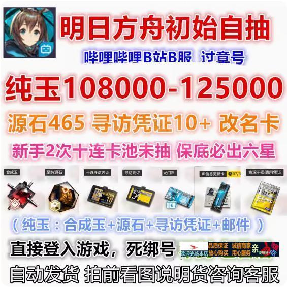 (B站)10W玉+限定+六星+19年老号【250源石,活绑先绑手机,第五章不封】+1-2六星自选凭证 (