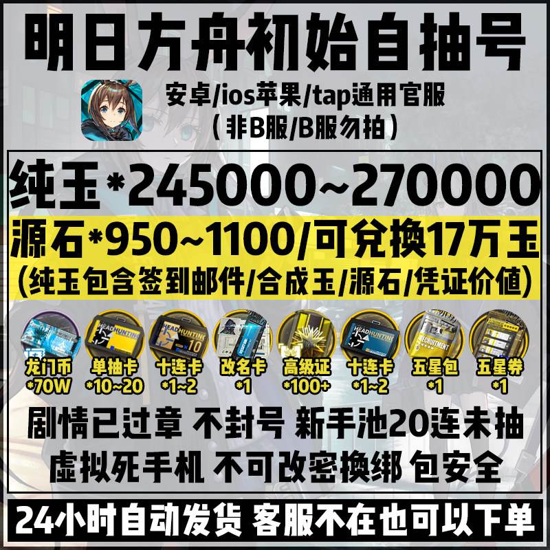 明日方舟自抽号初始号号安卓B服B站纯玉源石石头抽自选组合号