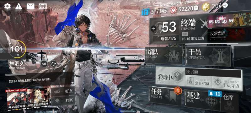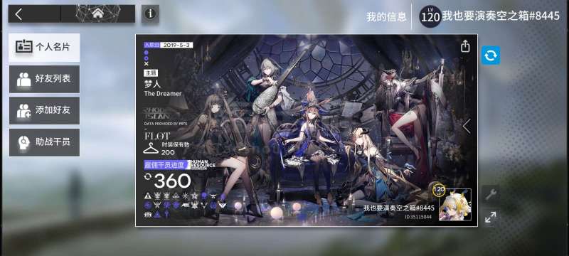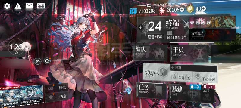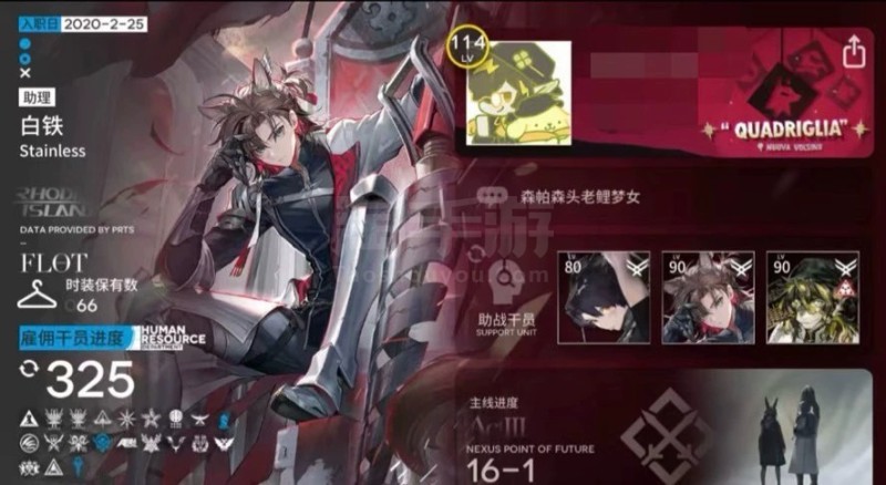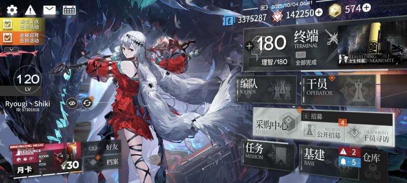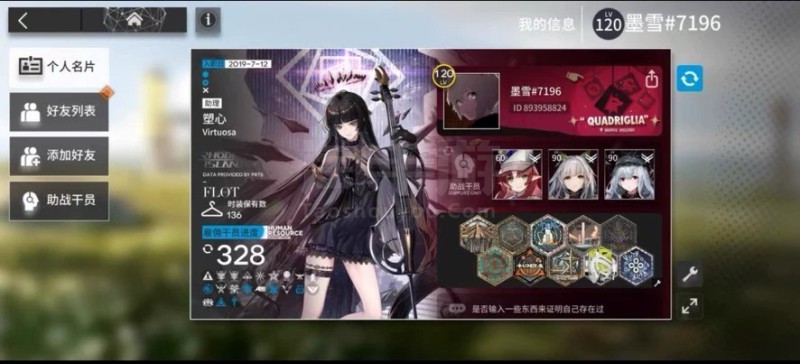 明日方舟【安卓官方】全限定,120级,105六星,91精二,合成玉数量:225930,源石数量:370,截图是没有的干员