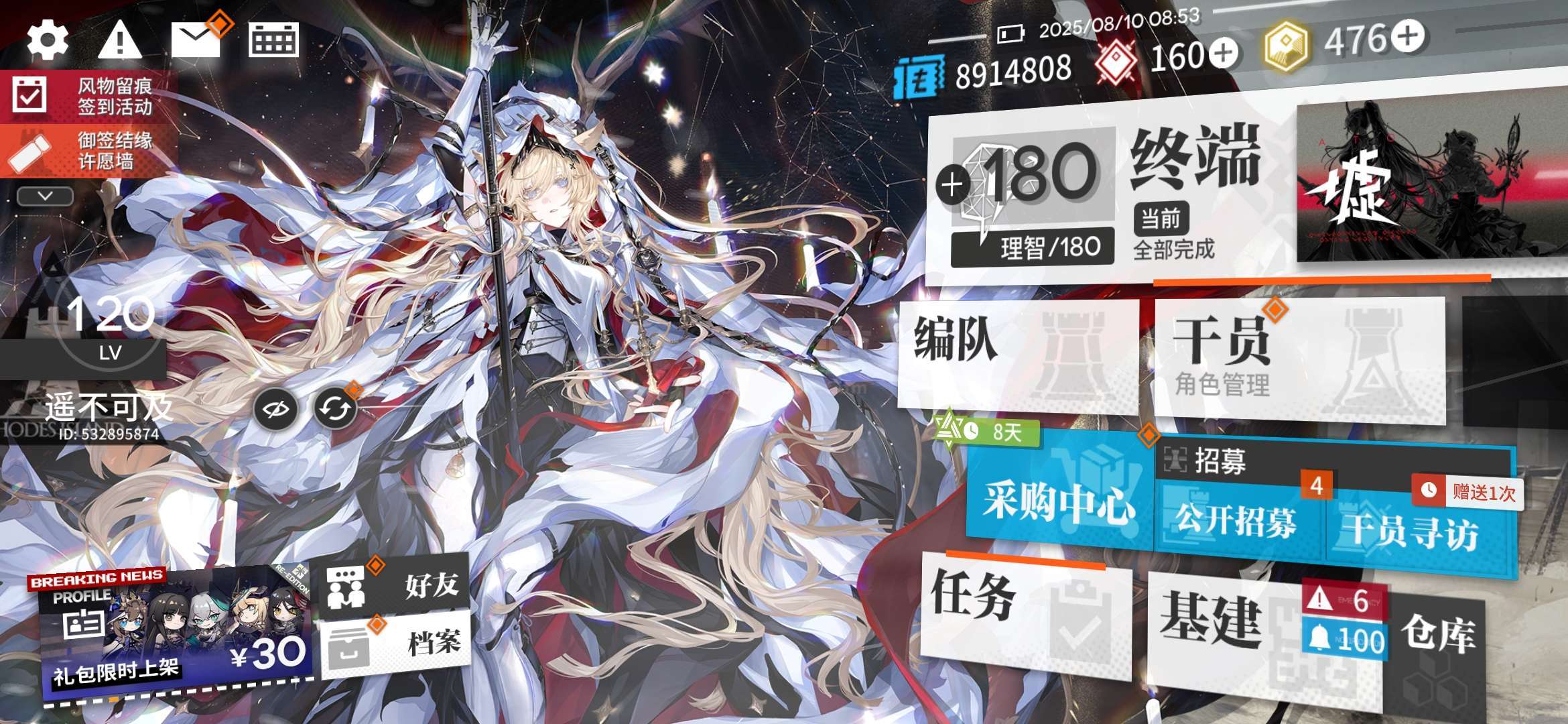 明日方舟【安卓官方】(官服)19W玉+限定维什戴尔+6星自选凭证【安全不封】