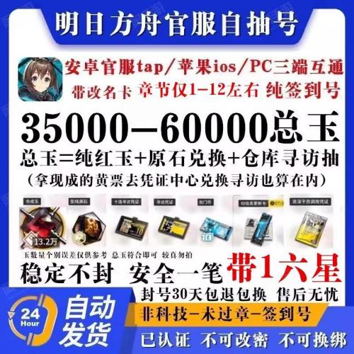 明日方舟【安卓官方】☛官服死绑 1-3六星 未过章♦其中含【40000-35000纯玉 剧情1-12左右】☚