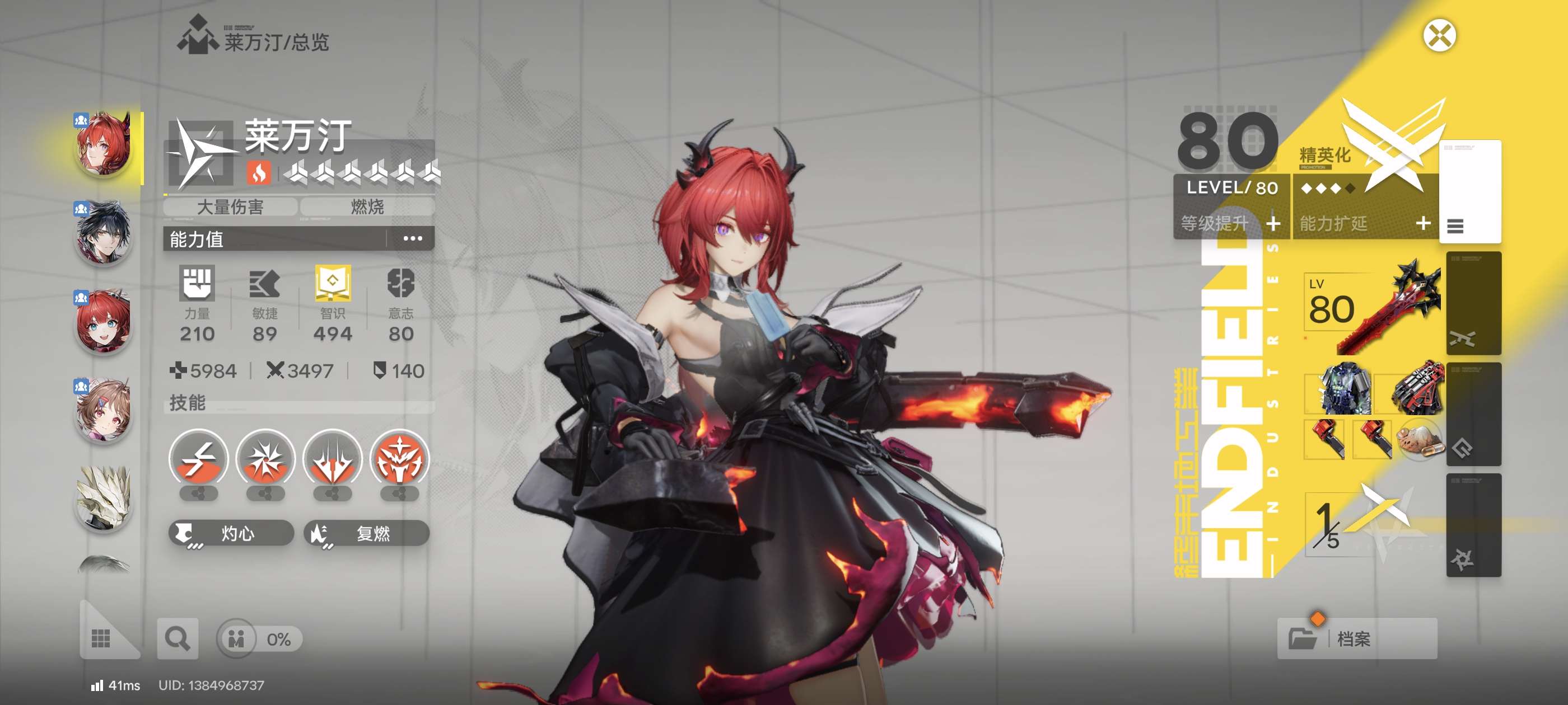 莱万汀➕专武,常驻别礼➕小羊,冰火两队,号比较欧,才三十级,资源特别多,四号谷地电线基本都拉了