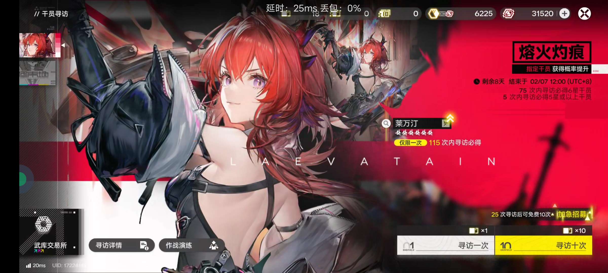 欧皇号,30抽1+1莱万汀,角色五红,七把红武,2w3千玉70源石