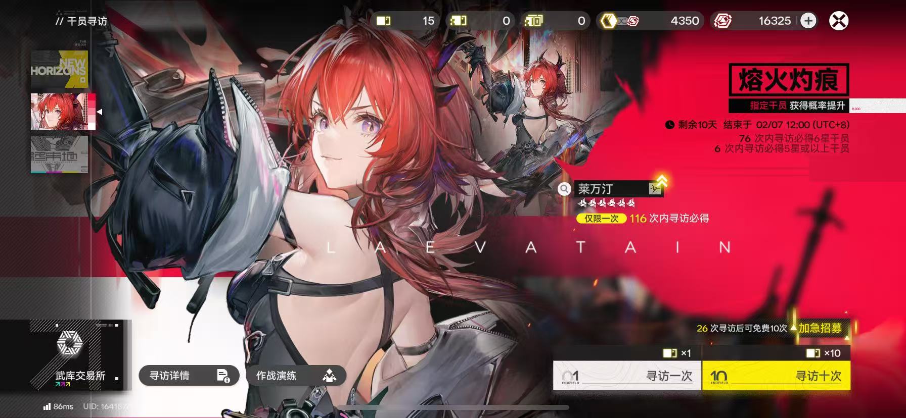 莱万丁,于烬,火队,18级初始号,可肝资源还多,才抽了50发