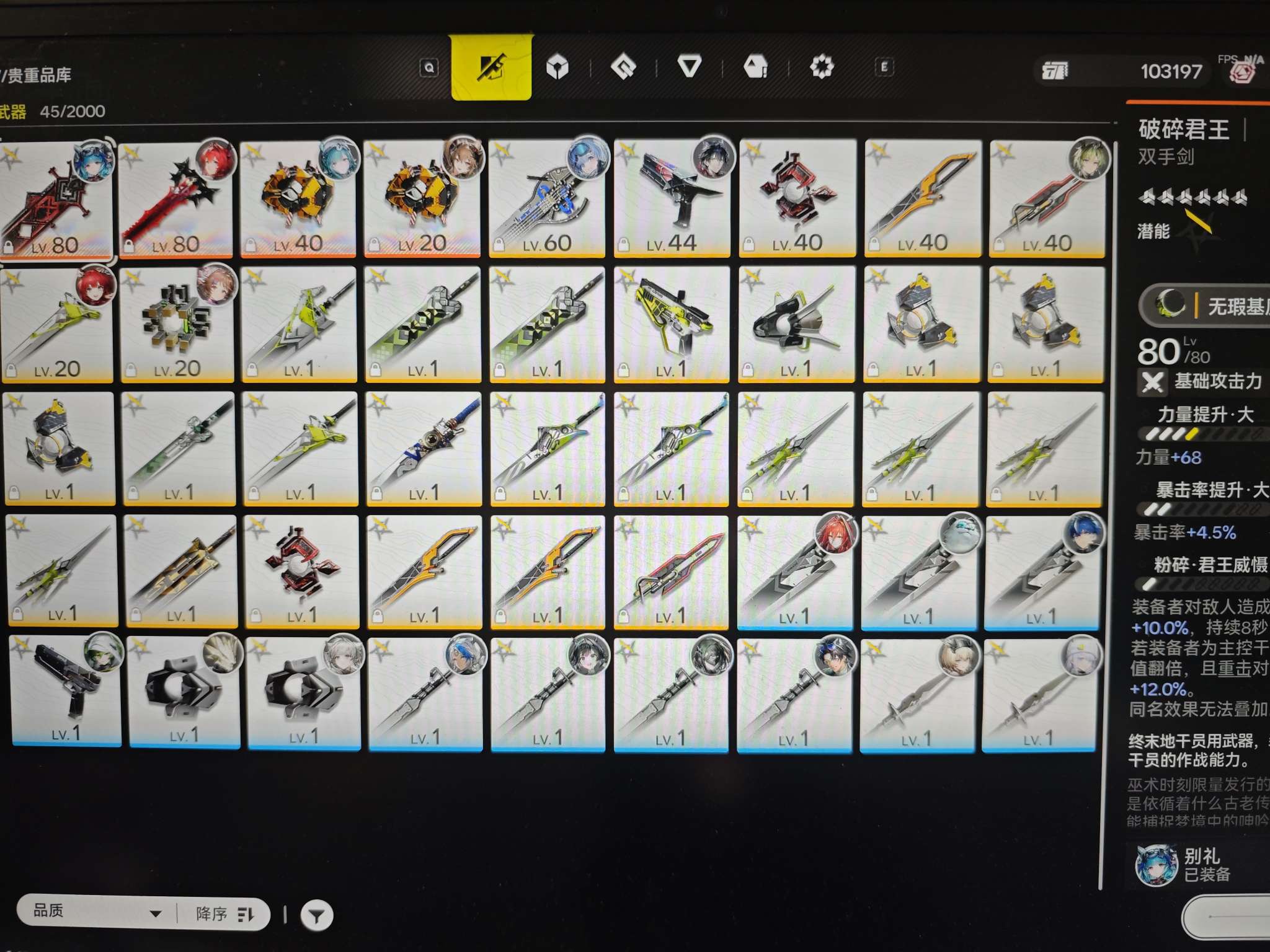毕业1命莱万汀+4破专武+2命别礼,有大小月卡,基建全弄好,电梯也搭好了