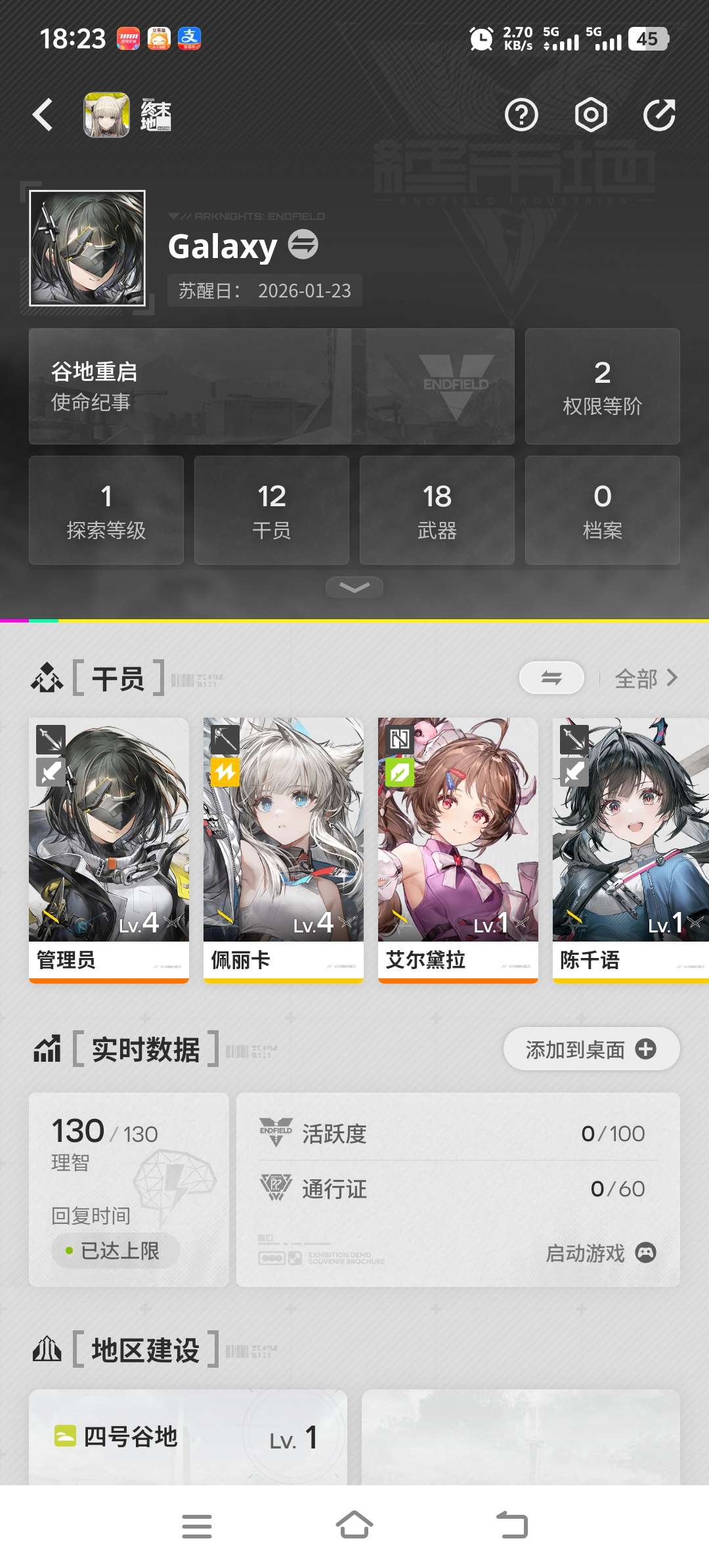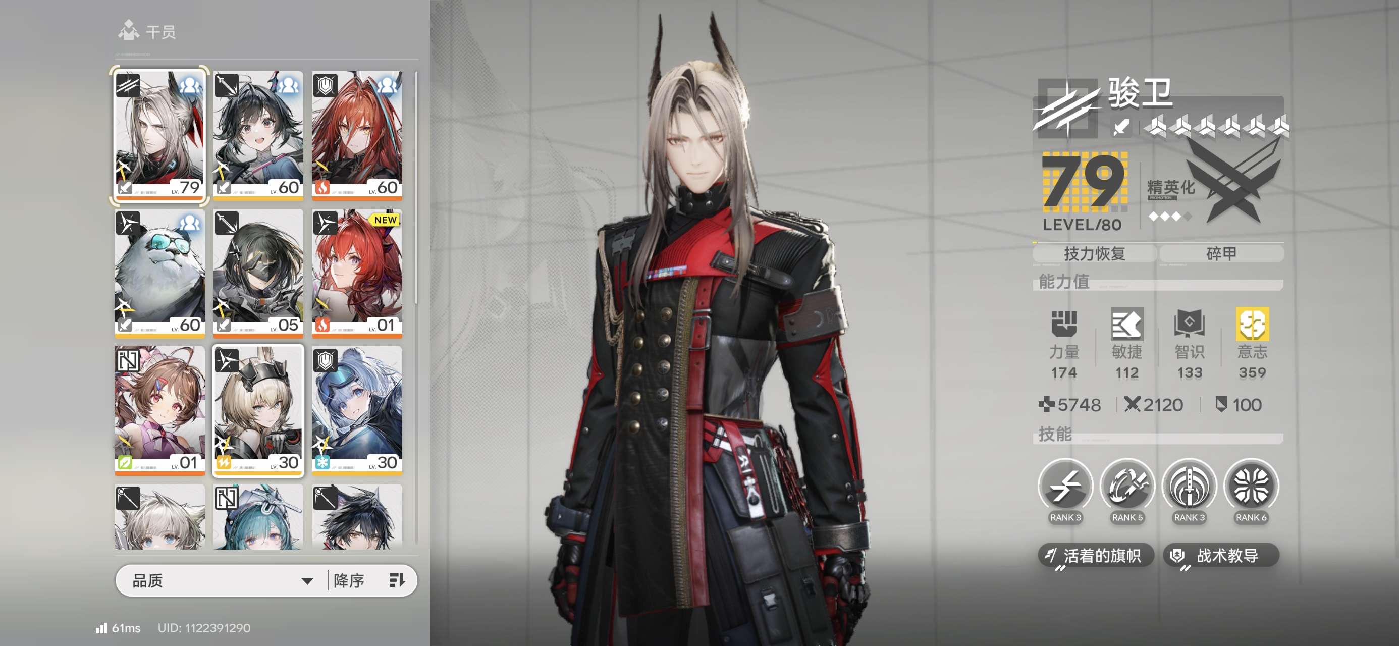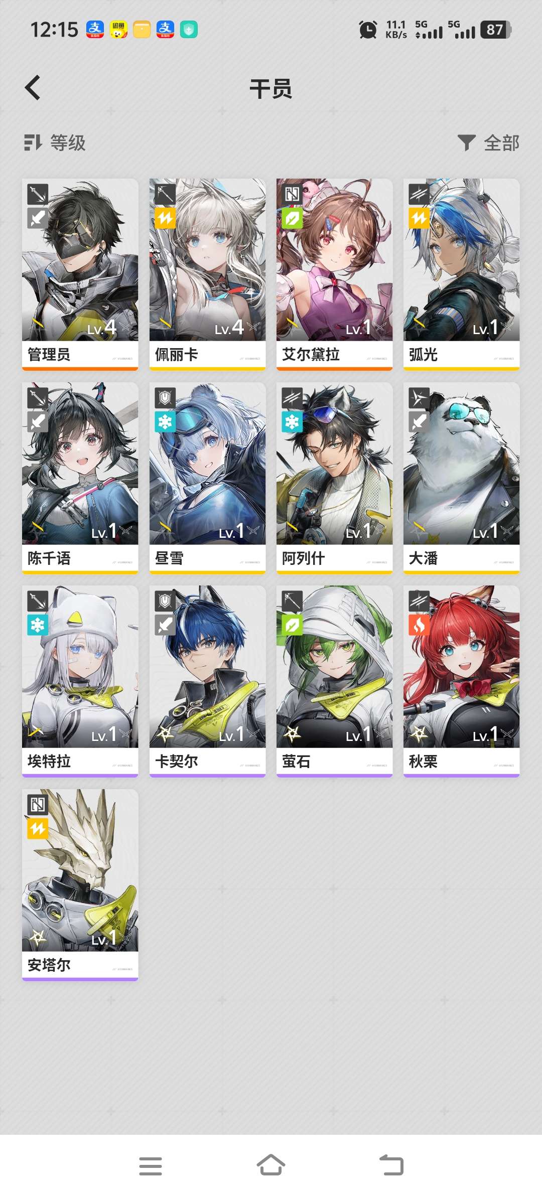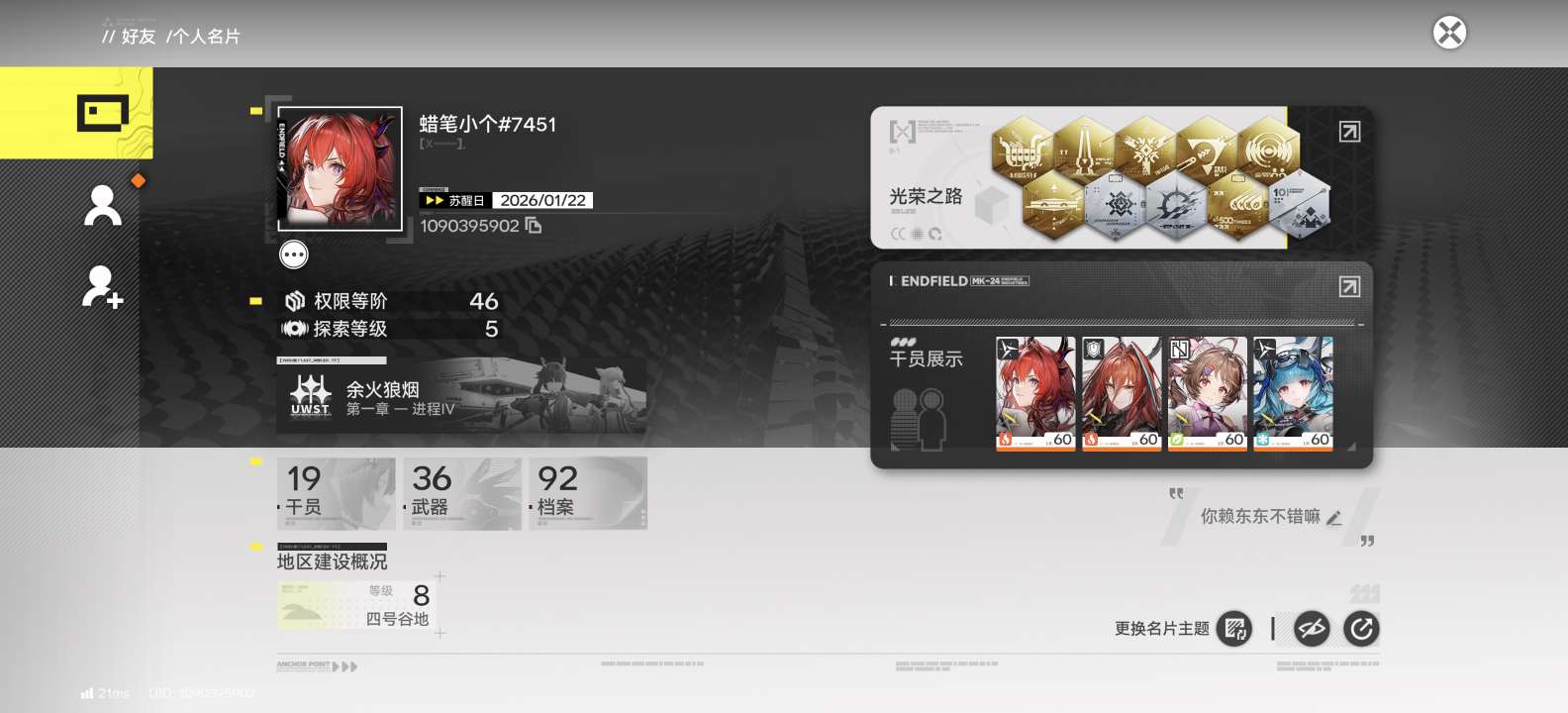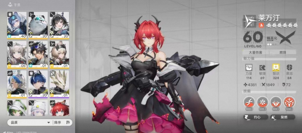 权限等级15女主总橙数3六星干员2六星武器1衍质源石33嵌晶玉1530武库配额7620六星干员黎风