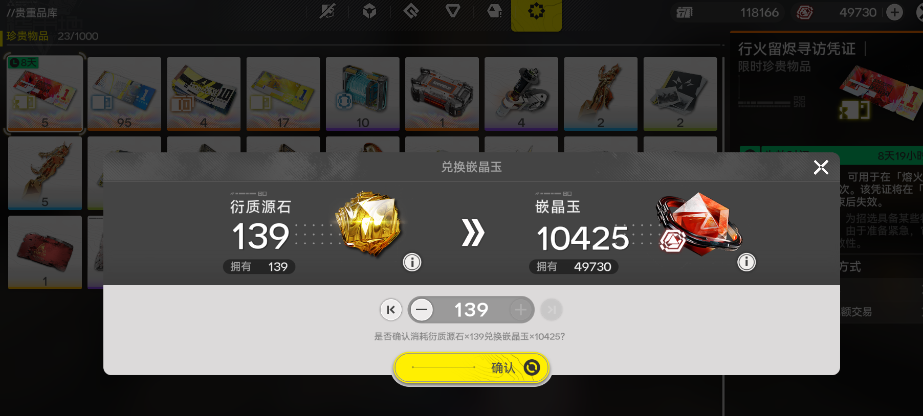 【单号110-150抽】嵌晶玉8400-10000,常驻票25-40,UP限定票13-20,启程2十连,10武器券。安卓B服专用