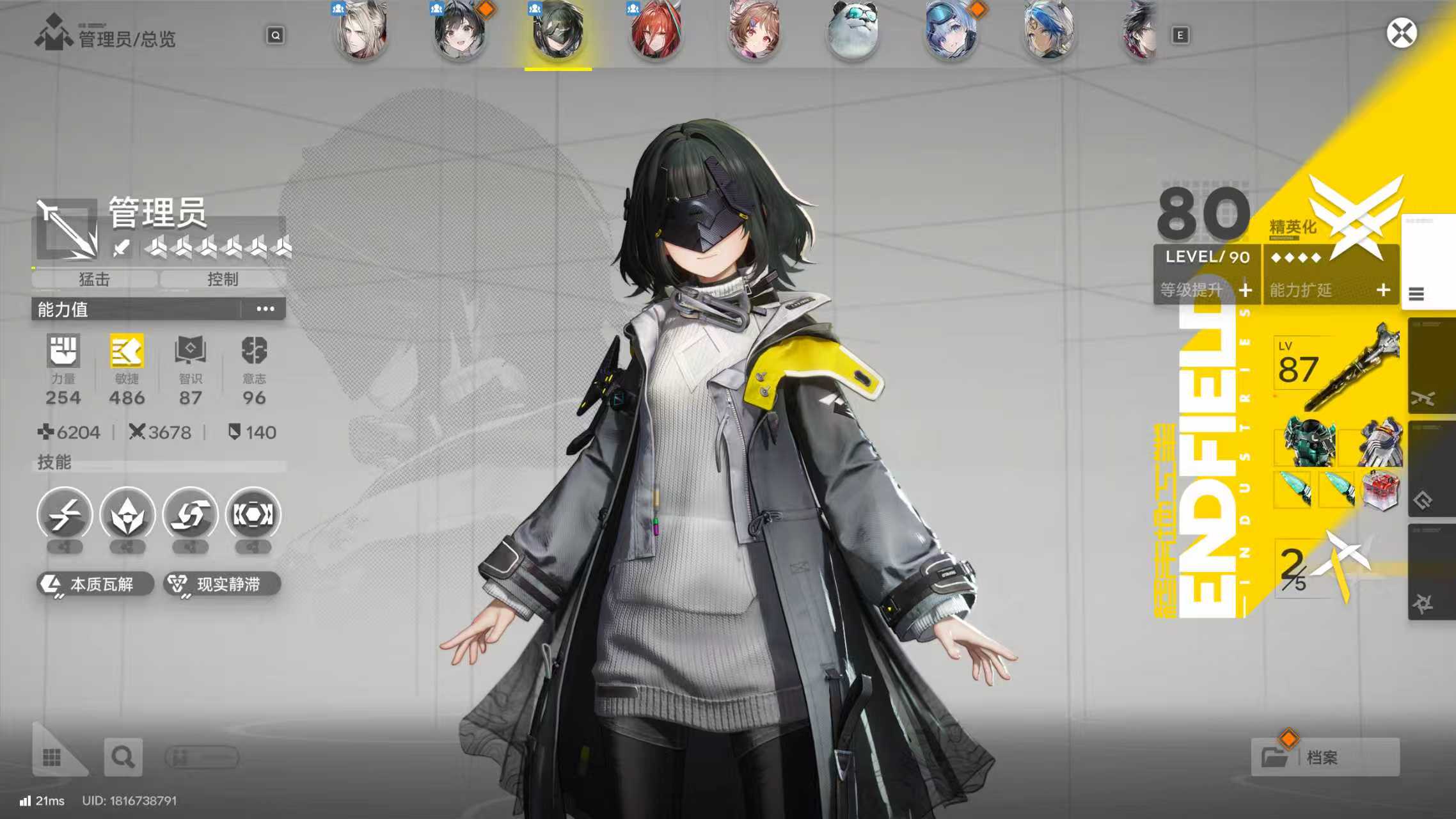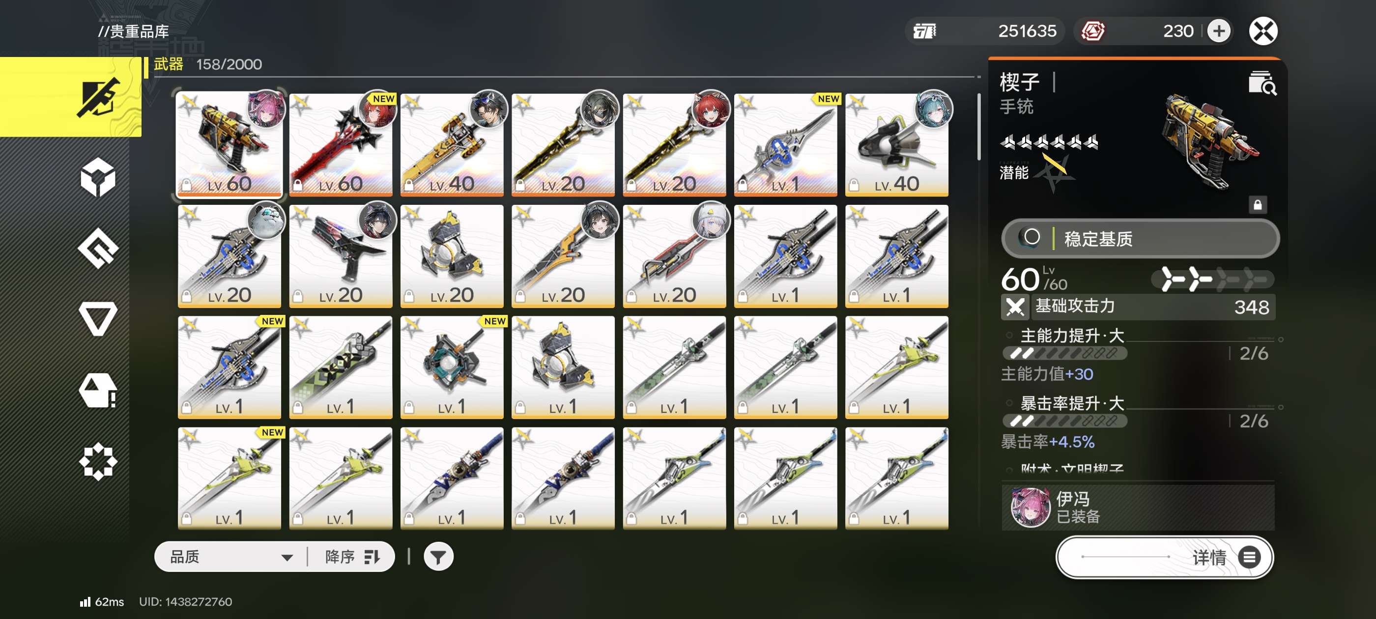 欧皇账号T0火队莱万汀0+1专武,TO物理队一命骏卫,余烬人均六星专武等级35,主线只到第一章进程3