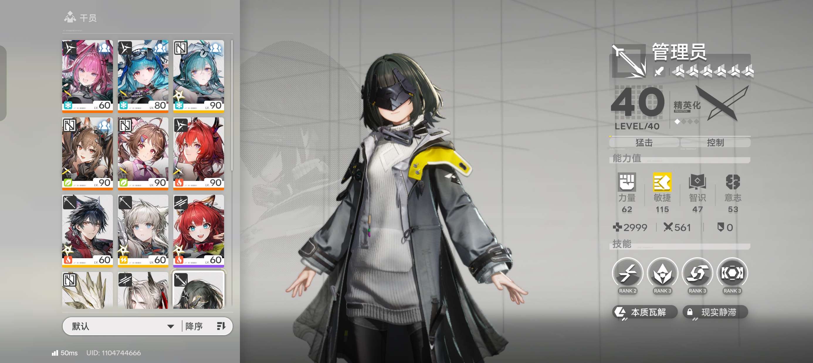 2+1伊冯,0+1别理,0+0杰哥,0+2莱万汀,16把六星武器,全地图满探索,基建满级