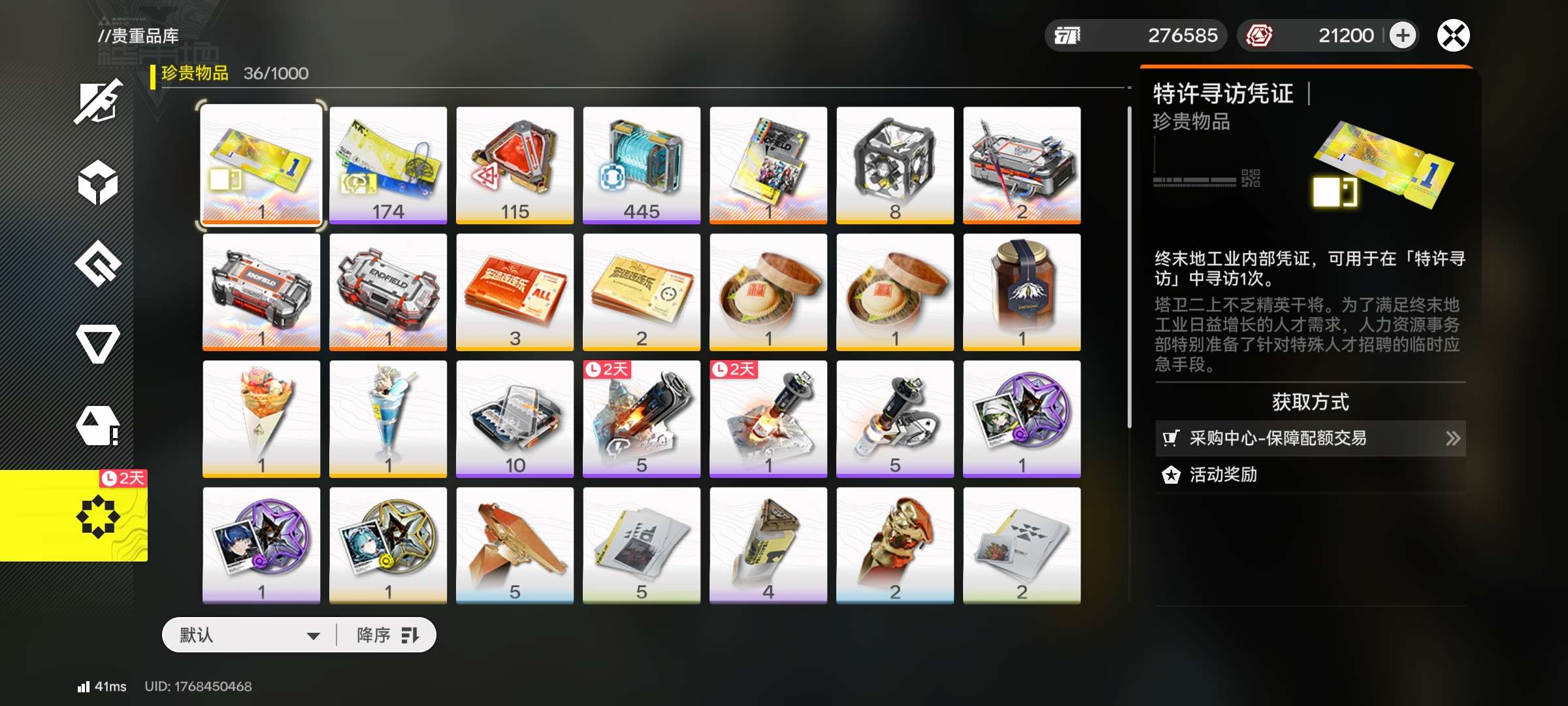 #明日方舟 终末地“欧皇号”49级,30抽莱万汀1+1,7把红武,仓库红武箱,75源石官服,资源多