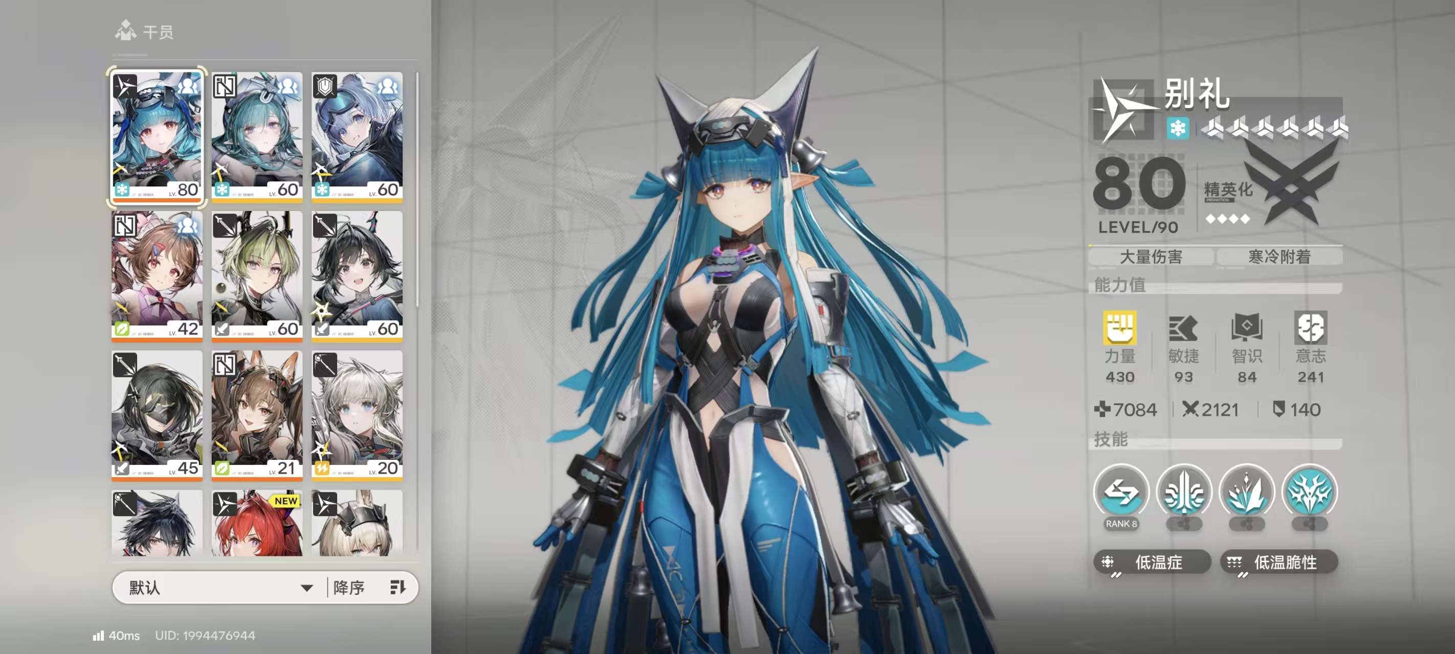 出开服毕业号,艾尔黛拉二命有专武,有毕业火队,电线基本拉完,基建接近饱和,手握50抽
