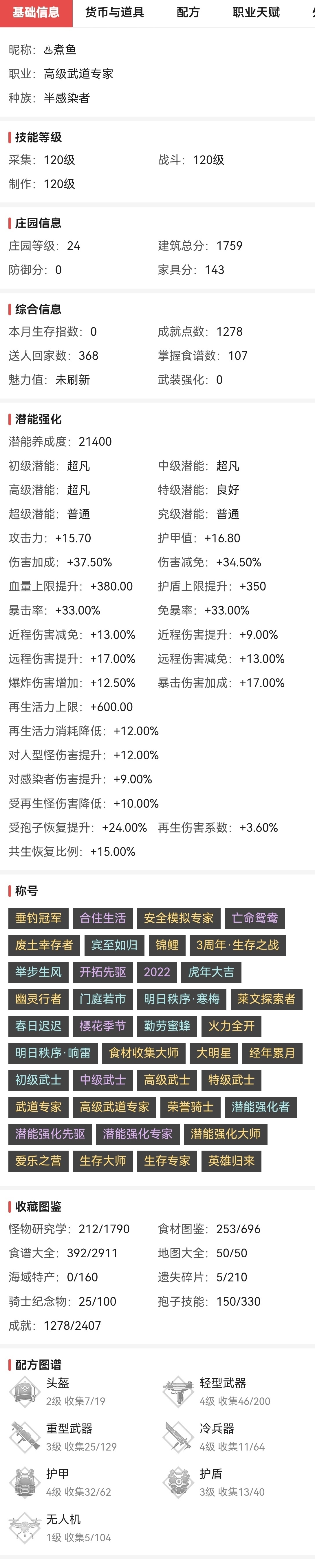 免爆武士极限可叠230,武器161615甲151516,无人机自己看图,打本完全够用。特训乱杀
