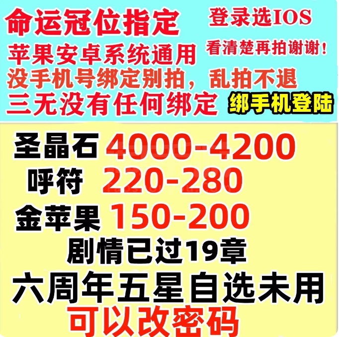 ❤️诚信店铺❤️b服未过章:❤️3000-2800圣晶石❤️200-400呼符❤️350-500金苹