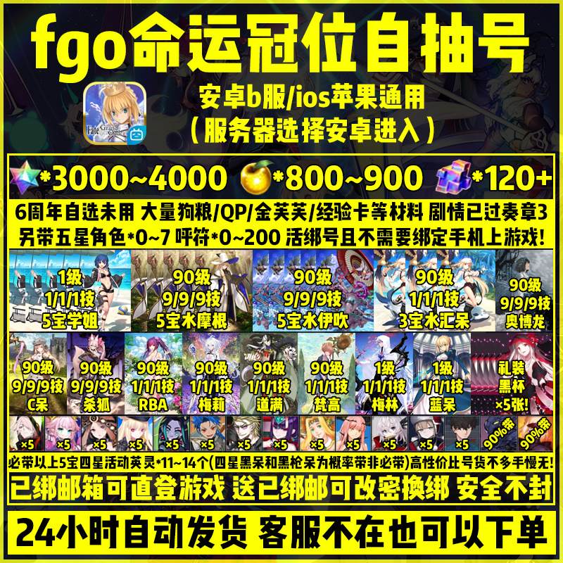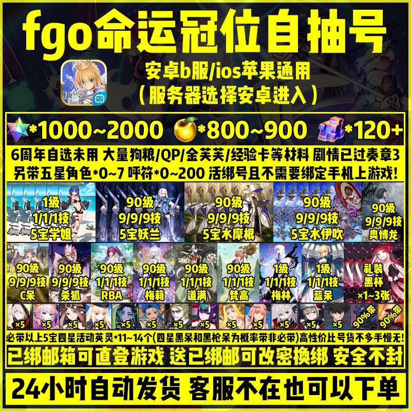 命运-冠位指定【安卓B服】命运冠位fgo初始号b服安卓苹果未过章五星黑贞自抽号石头号序章号