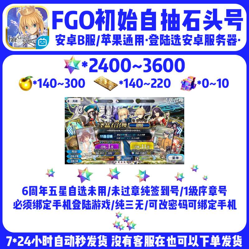 命运-冠位指定【安卓B服】fgo自抽号安卓ios苹果b服fatego初始号2850石头3无序章呼符石头号