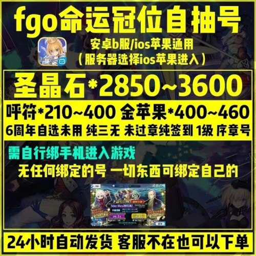 3800-4200石头,310金苹果,带黑杯+新宝石礼装,随机带1个常驻五星