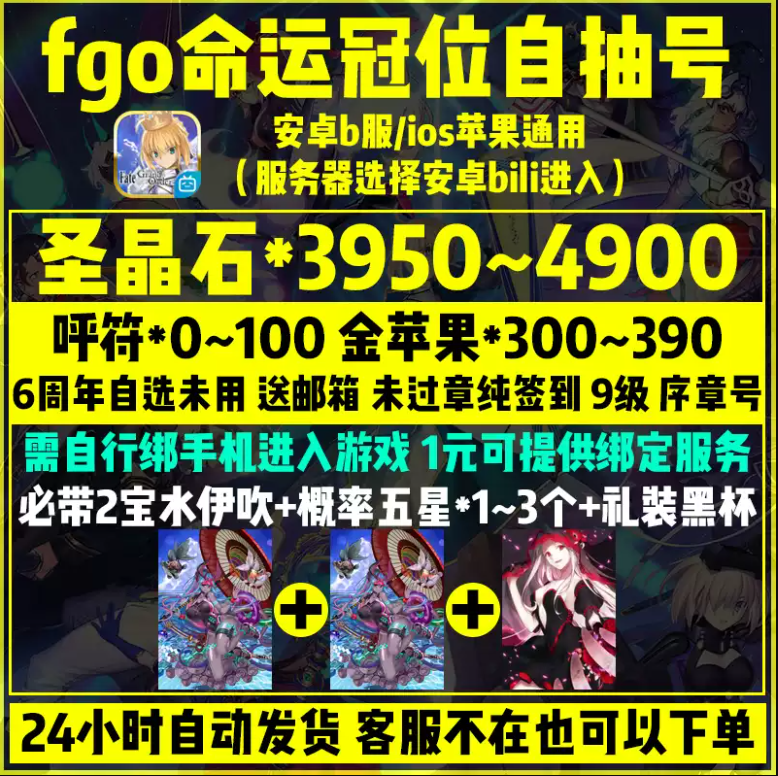 ❤️诚信店铺❤️必带 2宝水伊吹+黑杯礼装❤️3800+圣晶石 300+金苹果❤️未过章
