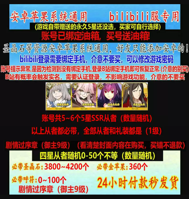 ❤️诚信店铺❤️必带 5-7五星从者❤️3800-4500圣晶石❤️350-500金苹果