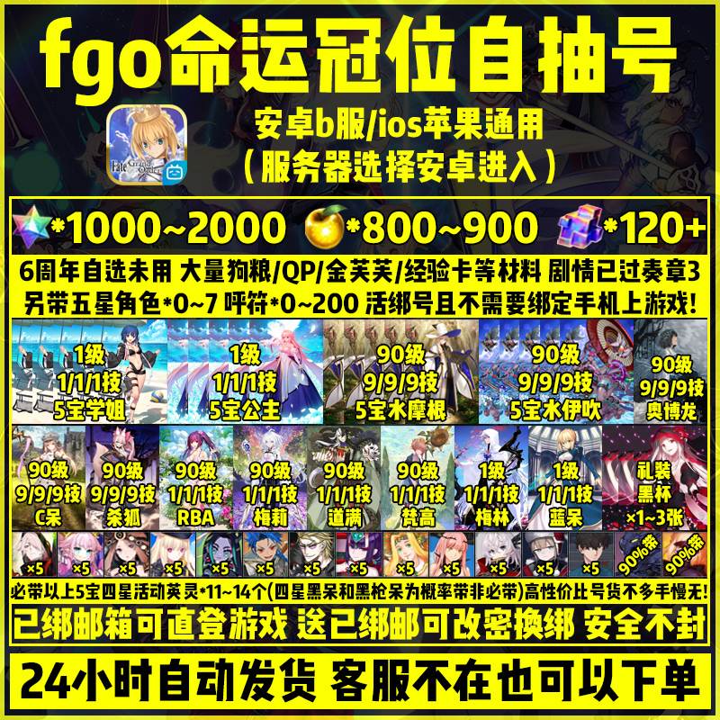 命运-冠位指定【安卓B服】命运冠位fgo初始号b服安卓苹果未过章五星黑贞自抽号石头号序章号