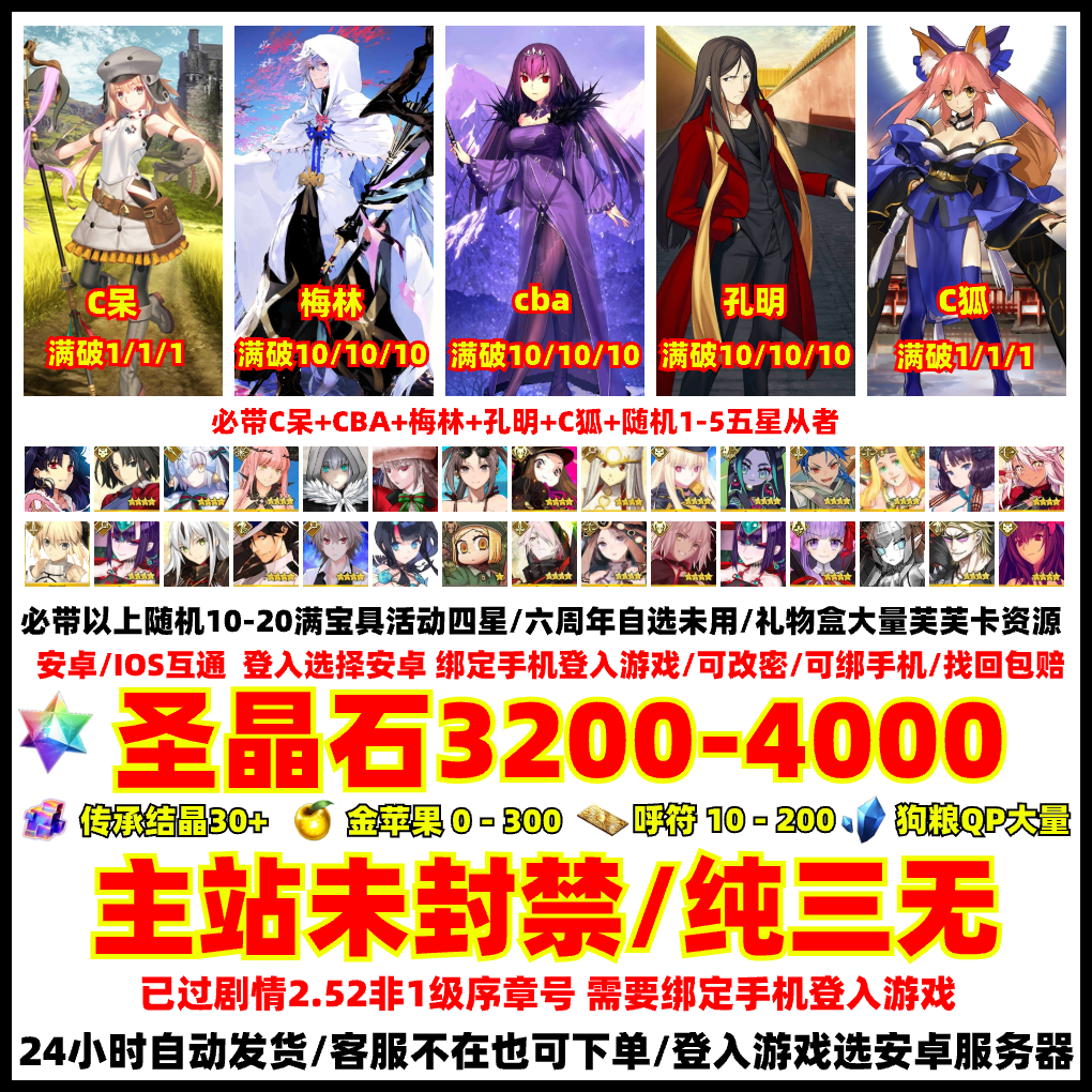 命运-冠位指定【安卓其他】fgoC呆梅林cba孔明c狐多拐石头号自抽号多活动从者主站正常号