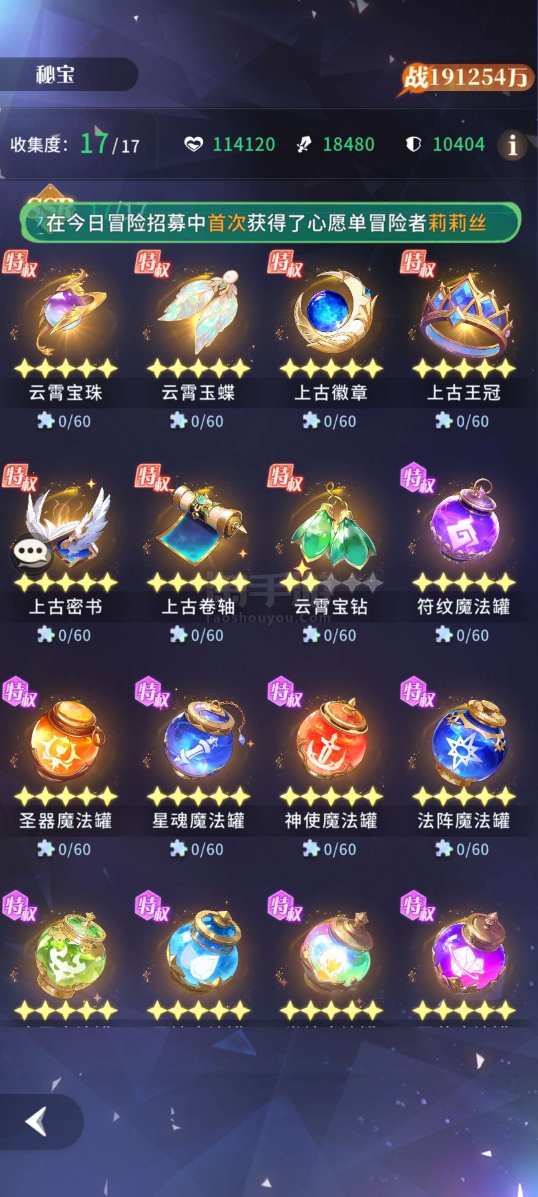 可小刀,角色64个差2个满,其他看图鉴