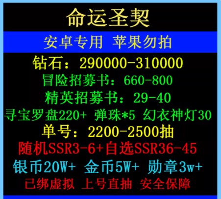 命运圣契安卓官服自抽号初始号290000钻石2200抽39SSR