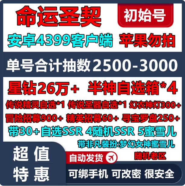 安卓4399端,单号2500~3200抽带超多自选SSR详见主图