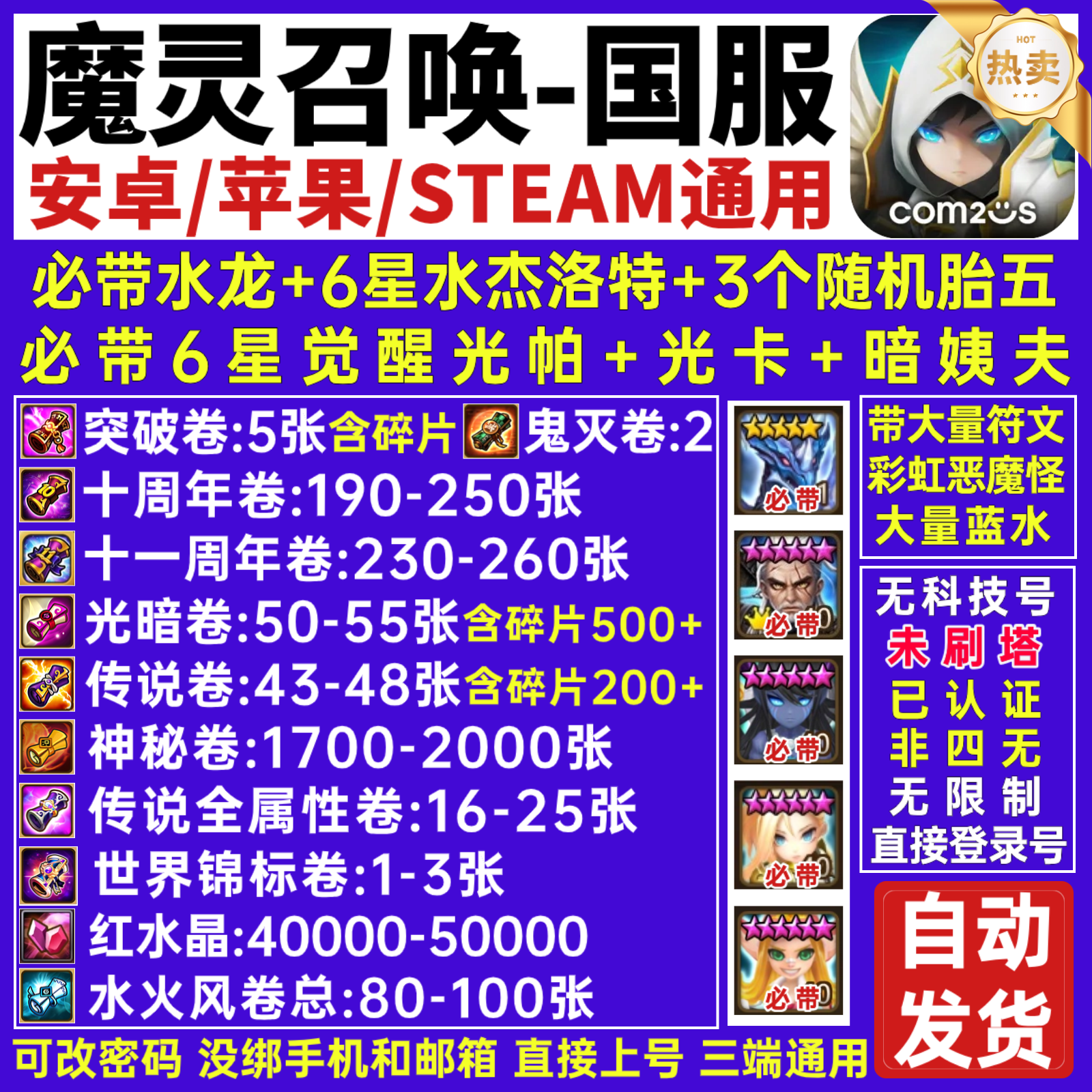 ❤️必带8-10真胎五+6星满技能觉醒6个❤️25+传说全属性卷 3万红水晶❤️