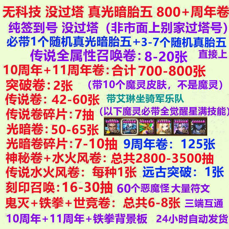 魔灵召唤800张周年卷光暗胎5自抽初始号抽抽乐无科技没过塔国服31